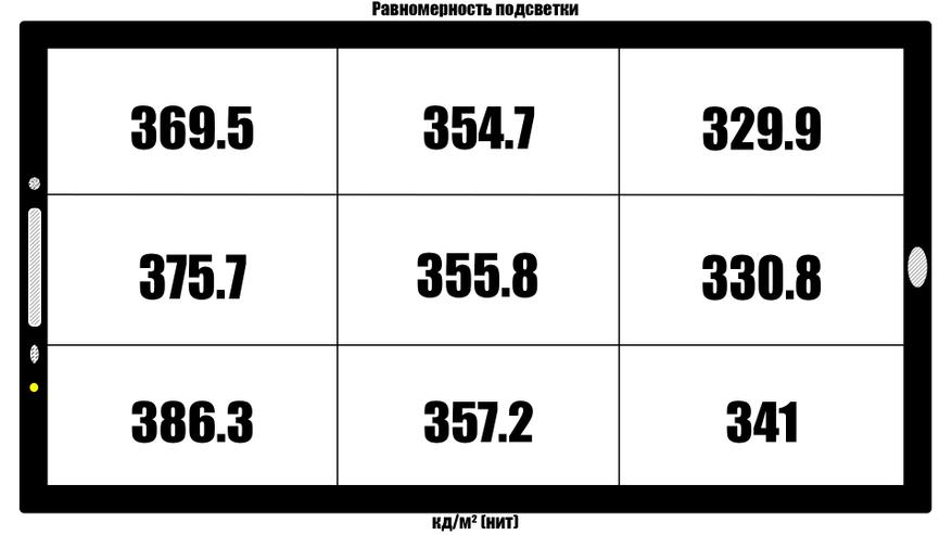 Равномерность подсветки средняя — 85.4%.