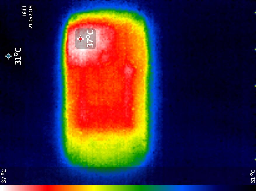 Во время стресс-теста в приложении Antutu задняя поверхность смартфона нагрелась до 37°C при комнатной температуре в 27.4°C — это небольшой показатель, поверхность смартфона в худшем случае чувствуется тёплой, но не горячей.