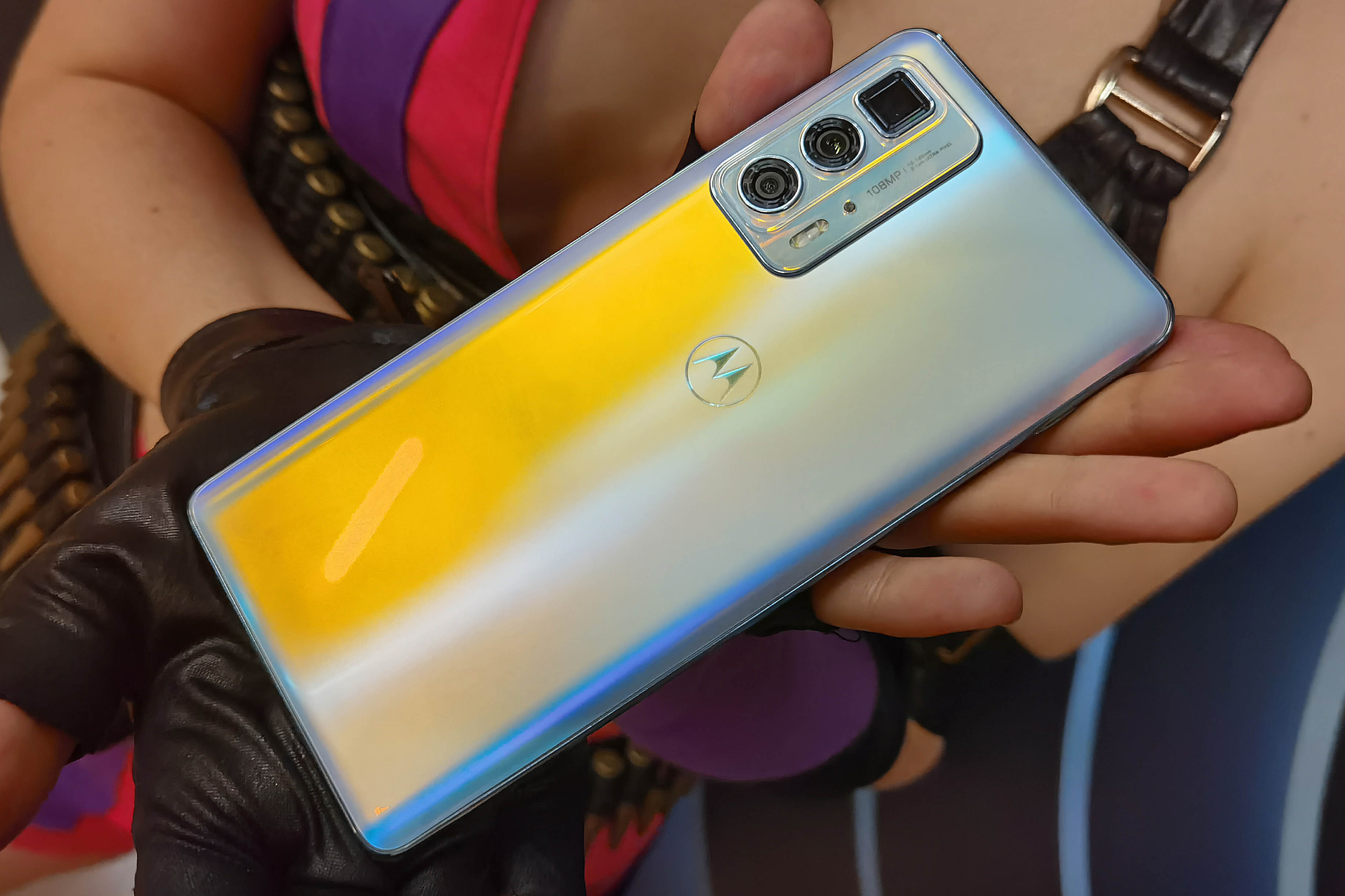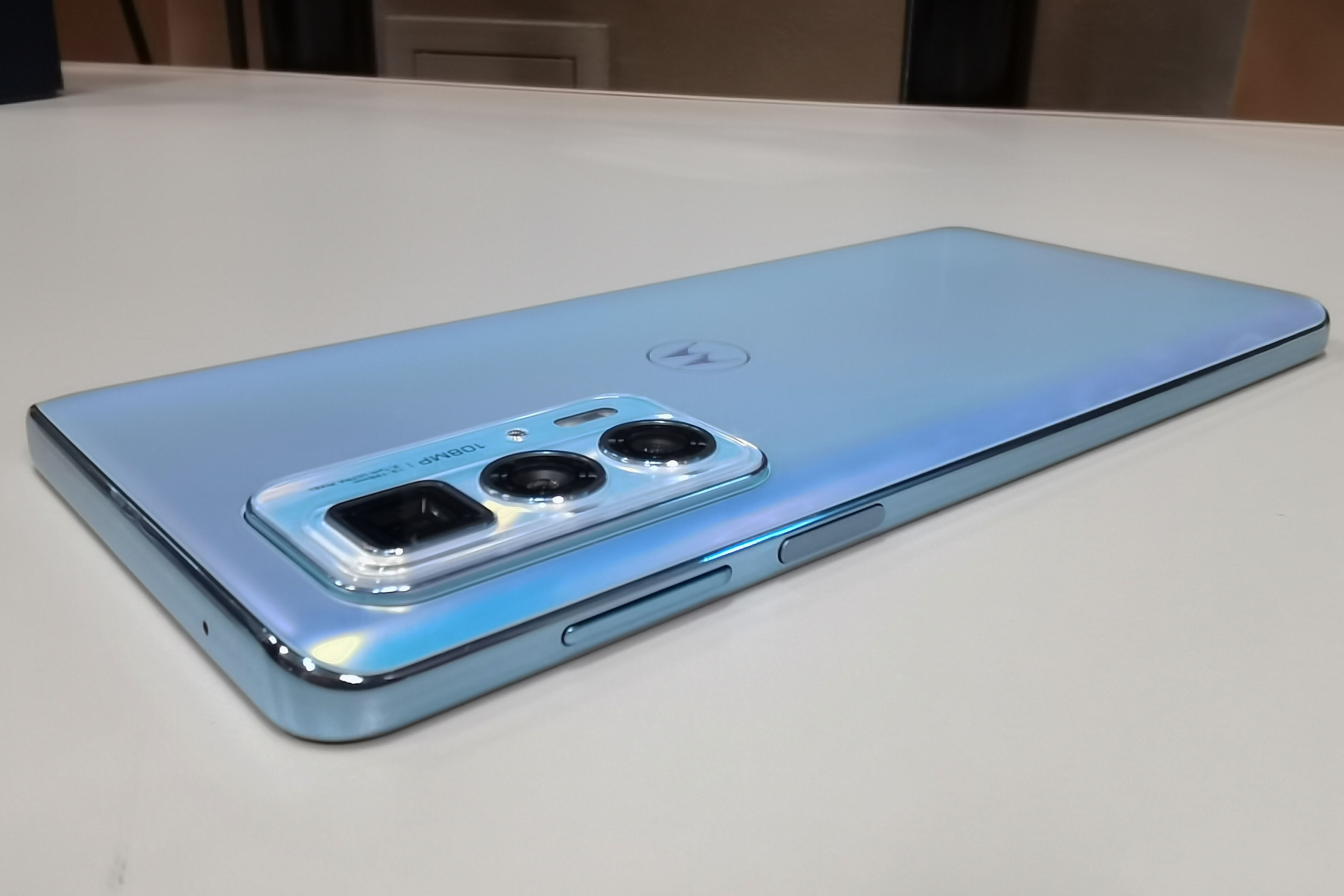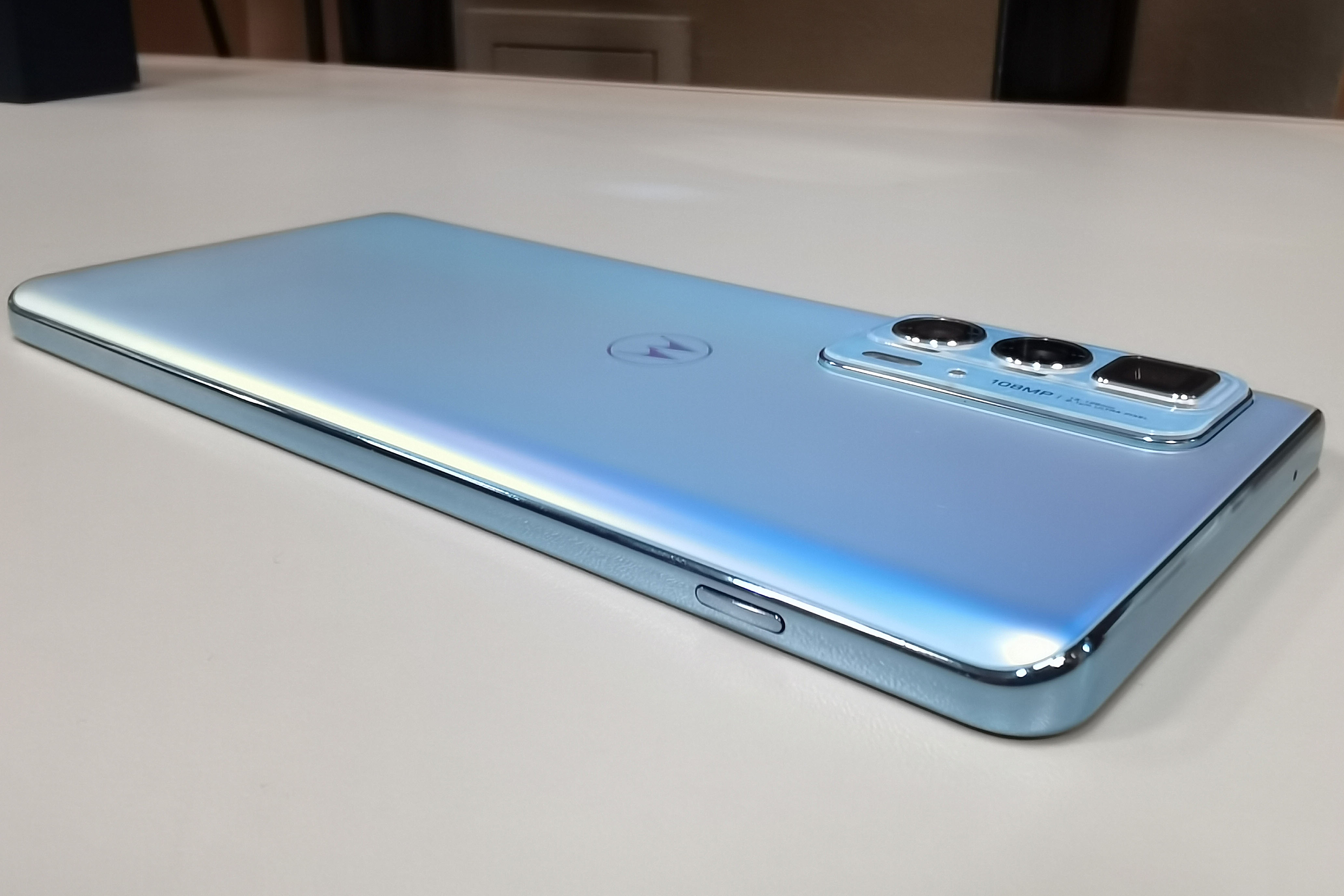 Motorola edge 20 pro доступен в двух расцветках: темно-синей и жемчужной. Смартфон обладает большим 6.7-дюймовым OLED-экраном с разрешением 2400x1080 (сторон 20:9). Заявлена поддержка 10-битного цвета, полный охват DCI-P3 и соответствие стандартам HDR10+. Адаптивная под отображаемый контент частота обновления может достигать 144 Гц (частота опроса 574 Гц), что важно для любителей мобильного гейминга.
