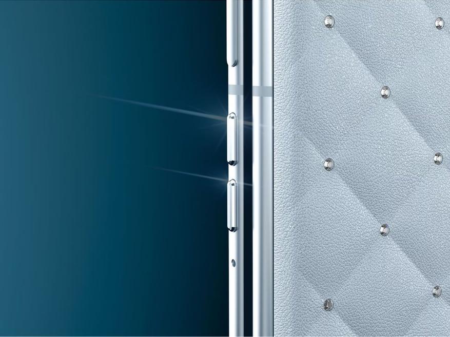 Особенностью смартфона стала стеганая задняя панель с 35 вручную размещенными кристаллами Swarovski. Центральный элемент дизайна — 26-гранный кристалл на шарнире, который привлекает внимание при сложенном устройстве. Производитель предусмотрел прозрачный защитный чехол с креплением на руку для предотвращения повреждений декоративных элементов.