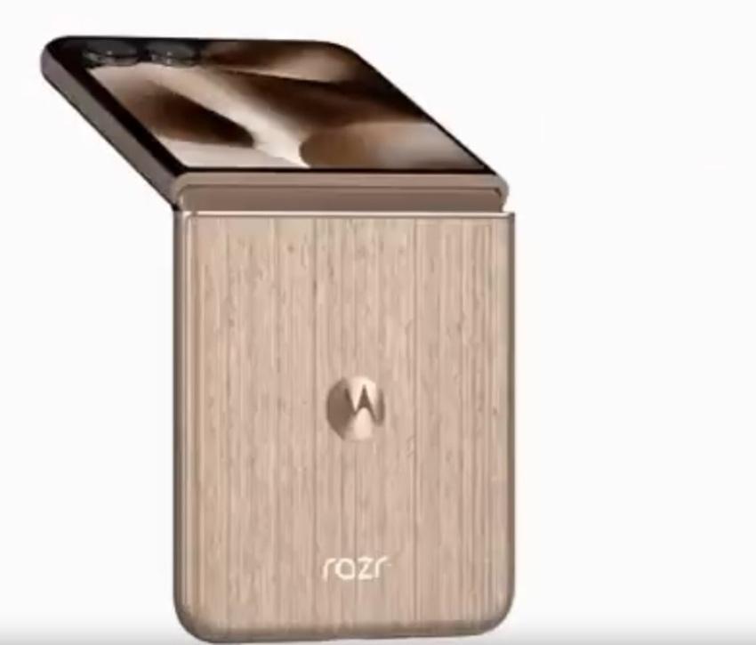 В сеть просочилось 360-градусное видео Razr 60 Ultra, также известного как Razr+ 2025, благодаря известному инсайдеру @evleaks. На видео можно увидеть, как складное устройство открывается и закрывается, демонстрируя текстурированную под дерево заднюю панель.