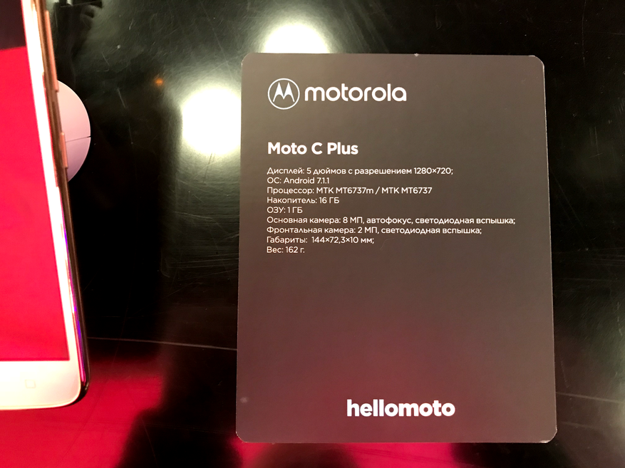 Дисплей: 5 дюймов с разрешением 854×480 или 1280×720 (Moto C Plus);