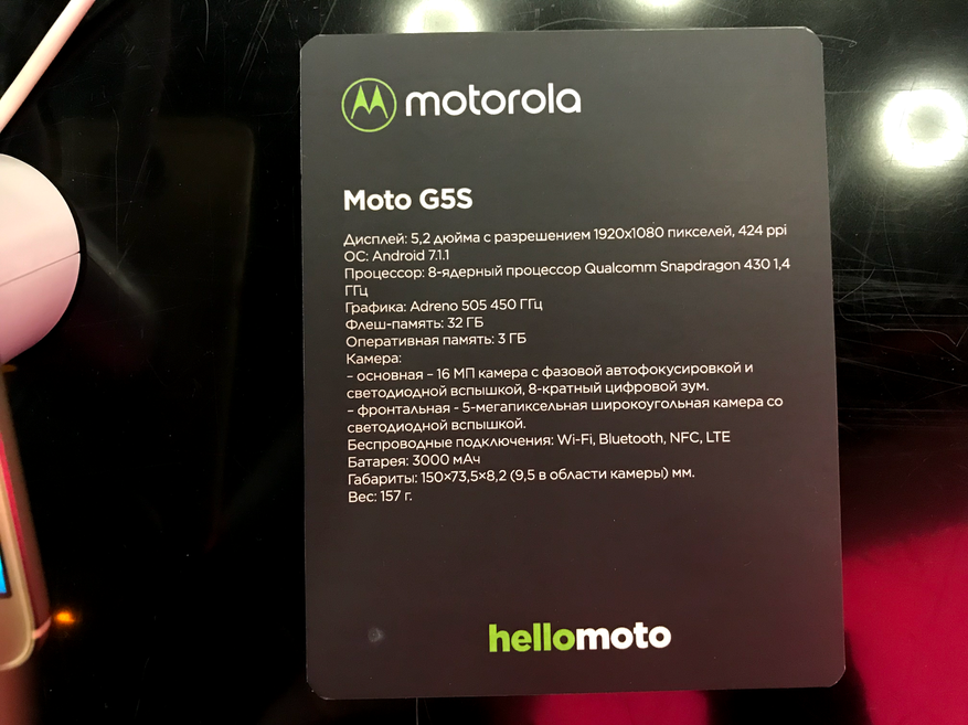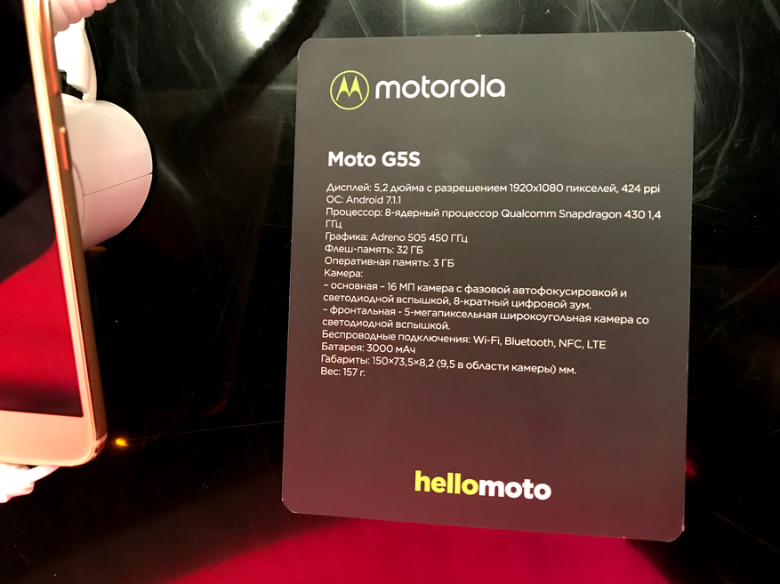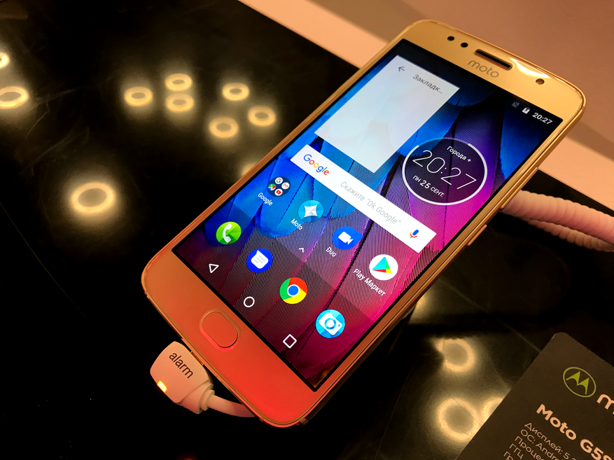 Серия Moto G также получила обновление. Характеристики, конечно, скромнее — внутри установлен Snapdragon 430, да и сменных модулей нет, однако пользователю также достанется технология TurboPower, аккумулятор на 3000 мАч, 16-мегапиксельная основная камера с фазовым автофокусом и 5-мегапиксельная широкоугольная фронтальная камера со вспышкой. Получился смартфон попроще, но с набором ценных фишек и весьма неплохим дизайном. Кроме всего прочего поддерживается NFC с Android Pay, а корпус выполнен из аллюминия. Цена, в сравнении с Moto Z2 Play, очень приятная.
