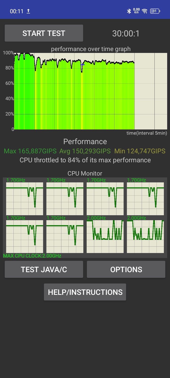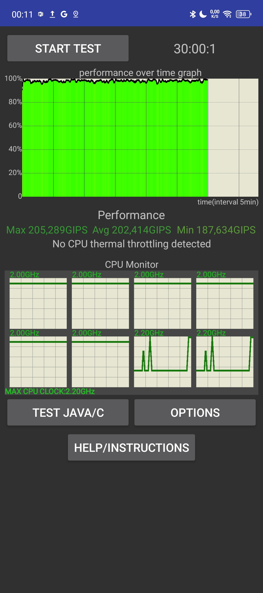 Рассмотрим смартфоны с точки зрения железа. Линейка HOT50 предлагает 2 чипсета производства MediaTek: Helio G81 (12нм) и Helio G100 (6нм). В процентном соотношении второй CPU мощнее на 62%, в тесте Antutu10 смартфоны набирают 431K и 254K, соответственно. На обычной эксплуатации это сказывается прямым образом, если HOT50 Pro+ «летает», то HOT50i сказывается слабый чипсет, вытекающий в микролагах и общей заторможенности системы. И это даже несмотря на повышенную частоту обновления экрана в 120Гц и HD дисплея. Тест на троттлинг наглядно демонстрирует падение производительности под нагрузкой в Helio G81.