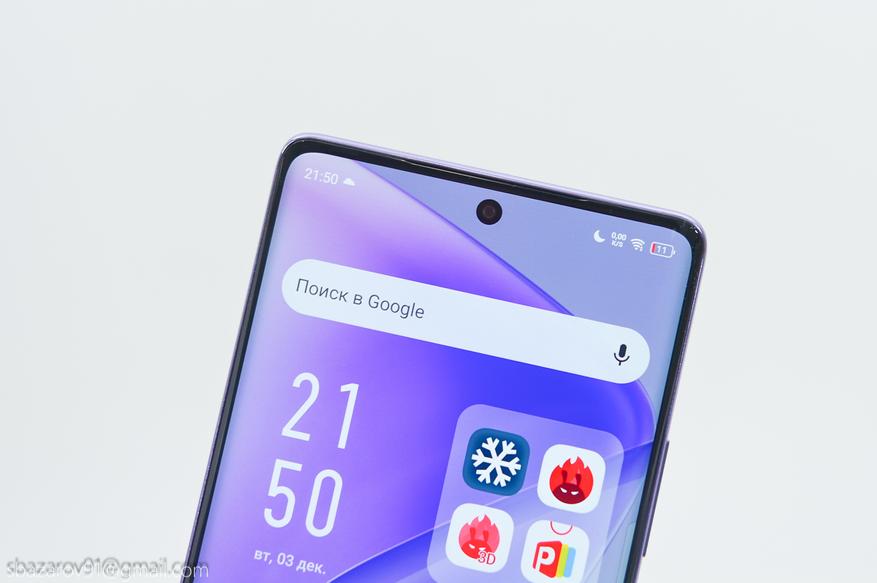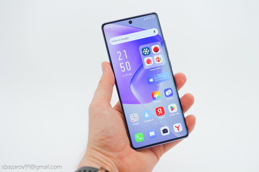 Несмотря на смену формата экрана (в HOT50 Pro был плоский, стал изогнутый), тип экрана остался неизменным. Перед нами изогнутый 6,78-дюймовый AMOLED-дисплей с FHD+ разрешением и частотой 120Гц. ШИМ на частоте 2160Гц уменьшает мерцание, а полезная площадь достигает 93.80%. Типовая яркость составляет 550 нит, а пиковая при просмотре HDR-контента автоматически увеличивается до 1300 нит. Цветовая гамма соответствует 100% DCI-P3, имеется сертификат TÜV Low Blue, так что работать с экраном одно удовольствие.