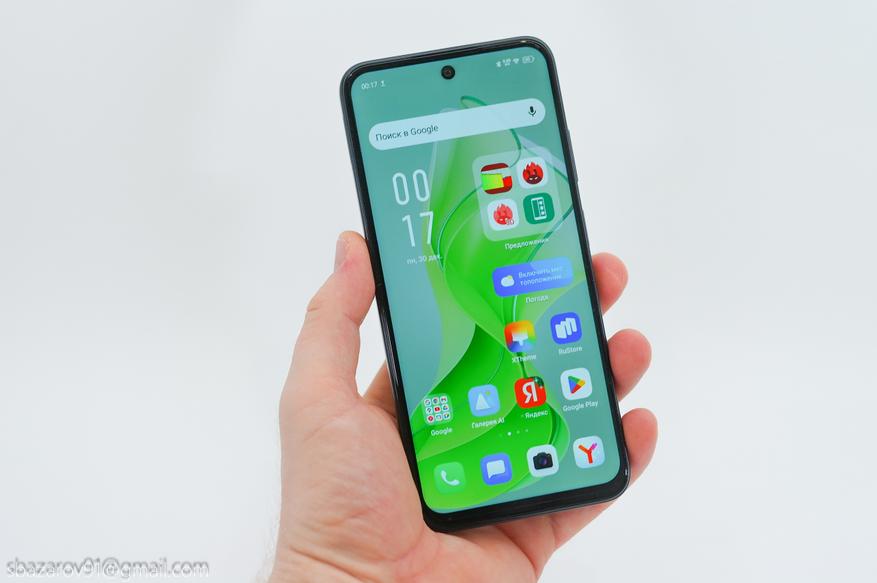 Экран — одновременно слабая и сильная сторона смартфона. Infinix HOT50i получил 6,7-дюймовый IPS-дисплей с разрешением 720*1600 пикселей. По отношению к корпусу экран занимает 90.2%, что наглядно видно по массивному подбородку. Из плюсов — частота 120Гц, обеспечивающая высокую отзывчивость и плавность интерфейса. Пиковая яркость невысокая и составляет 500 нит.