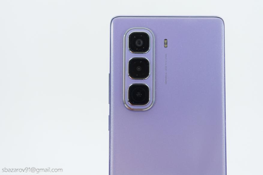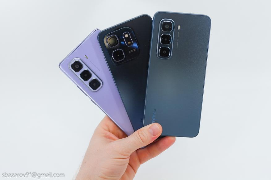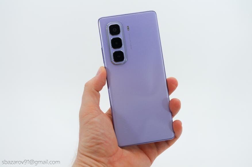 Цветовая гамма получилась более скромной, растеряв один из цветов. Теперь пользователям доступно 3 цвета: черный, серый и фиолетовый. Как и в случае с HOT 50i, серый и черные цвета имеют матовую заднюю крышку, а фиолетовый получил интересный узор с переливом.