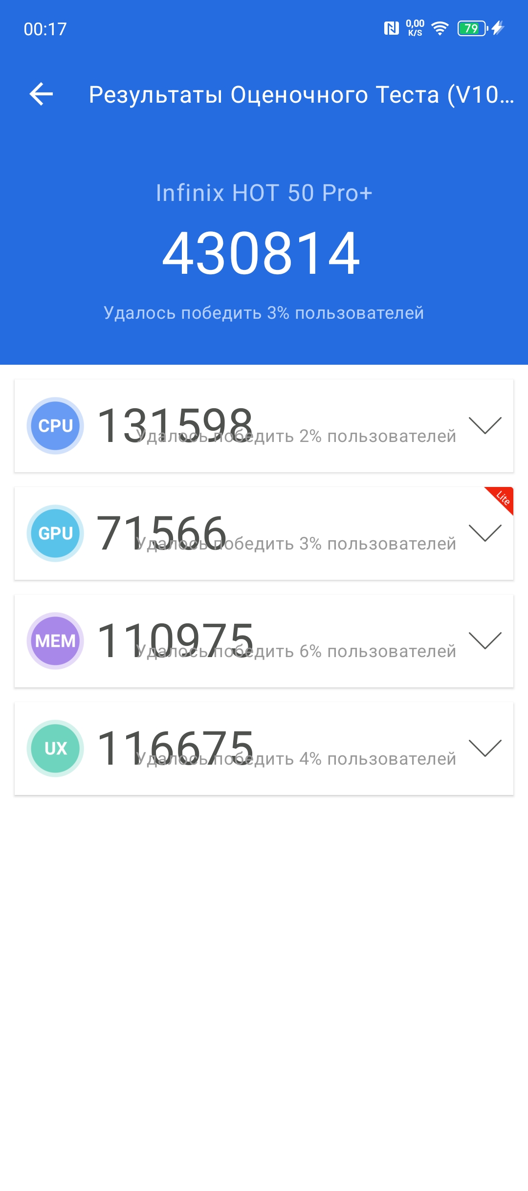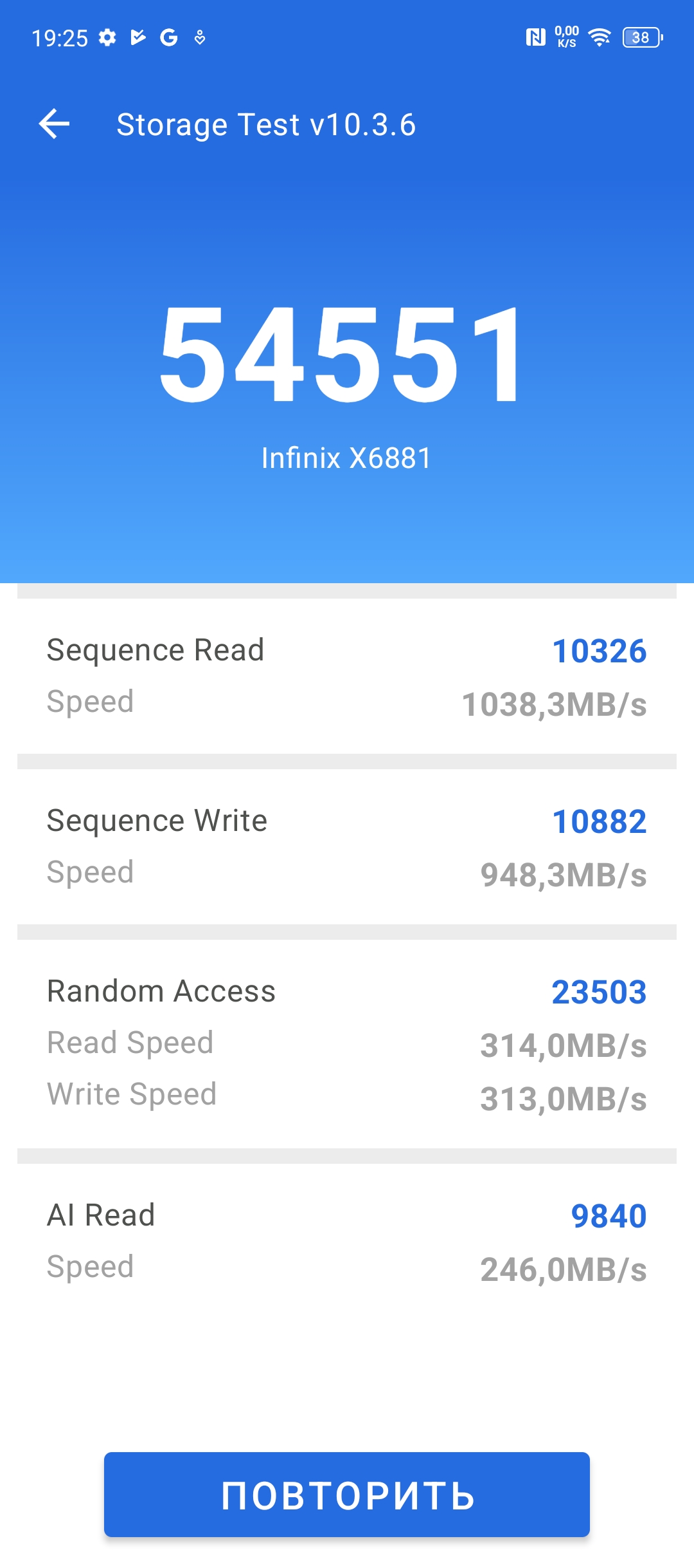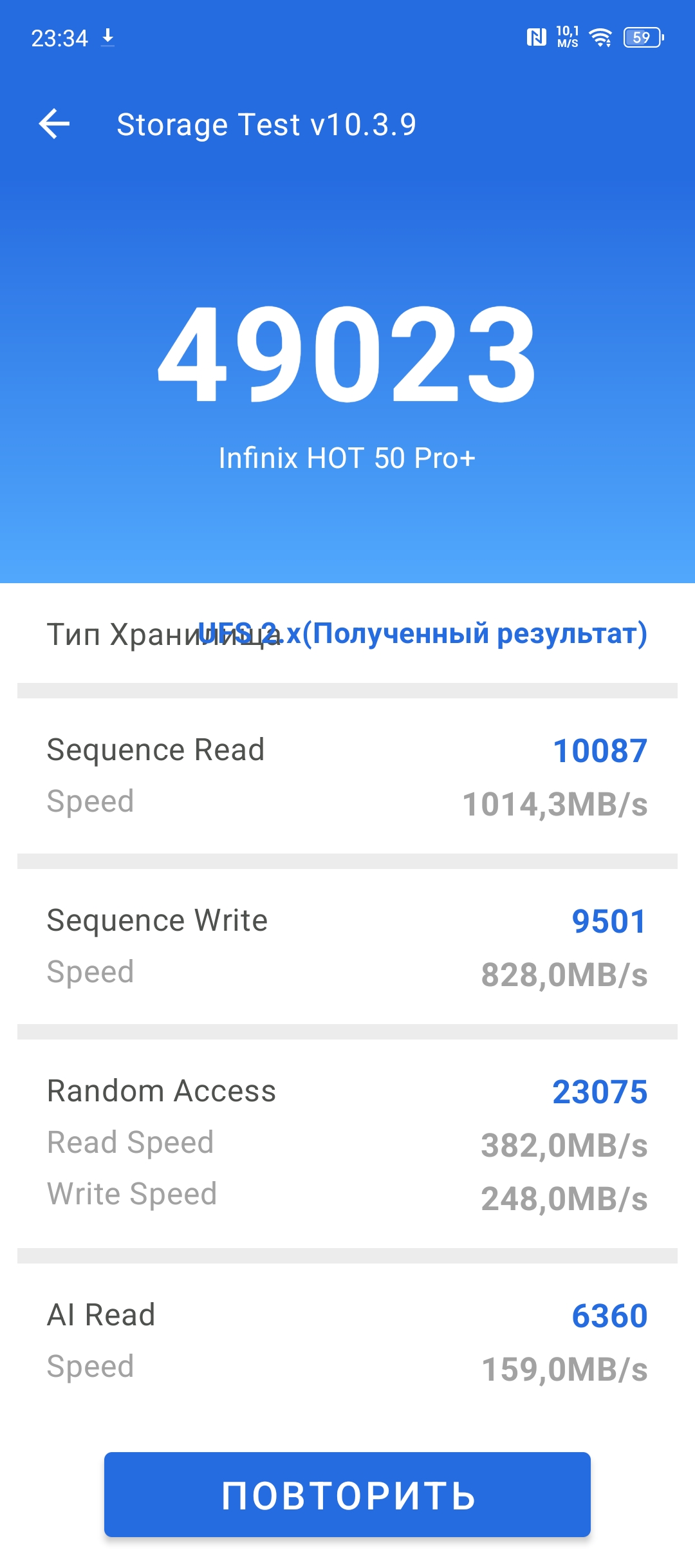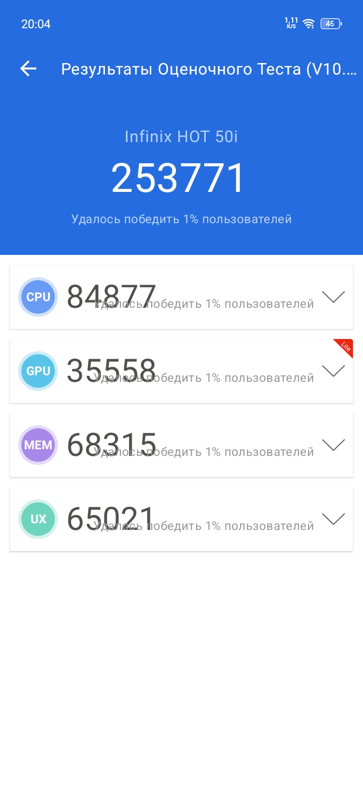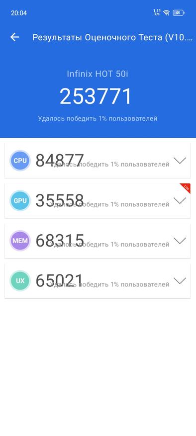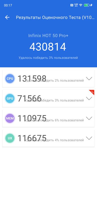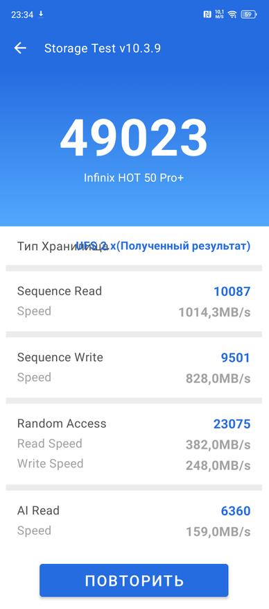 Оба смартфона оснащены LPDDR4X оперативной памятью объемом от 4 до 6 Гб в версии HOT50i и 8 Гб при версии HOT50 Pro+. Бюджетным моделям не положено иметь много памяти, да и нужно же на чем-то экономить. По накопителям все гораздо лучше, оба устройства предлагаются с 128 или 256 Гб встроенной памяти. Однако, одному положено eMMC5.1, а другому UFS2.2. Объяснять кому что, надеюсь не придется. Что касается скорости самого накопителя, то предлагаю взглянуть сразу на все 3 устройства: HOT50i, HOT50 Pro и HOT50 Pro+. Общая медлительность HOT50i напрямую связана с самим накопителем, возможно, в версии на 256 ГБ будет более шустрый РОМ.