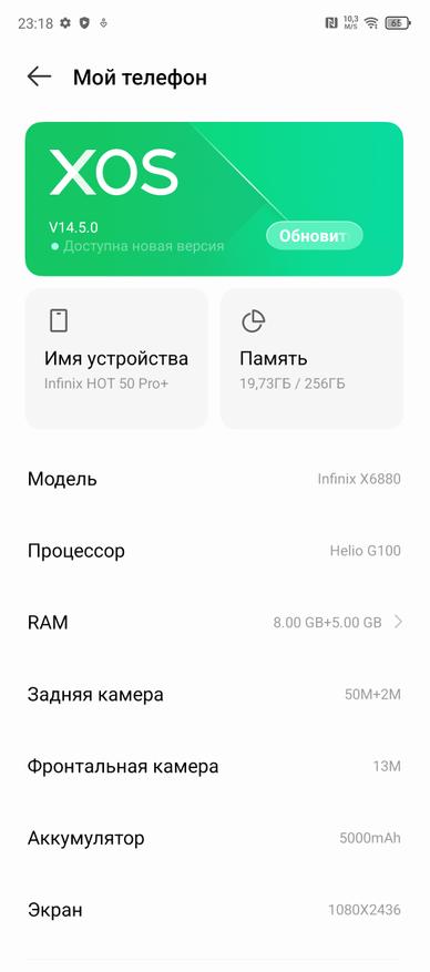 Настала очередь старшей модели — Infinix HOT 50Pro+, которая является улучшенной версией обычной прошки. Улучшения раскрылись в ряде факторов: корпус получил изогнутый Amoled дисплей и заднюю крышку (став более обтекаемым), а также более тонкий корпус — 6,8мм при сохранении идентичного аккумулятора на 5000мА*ч.