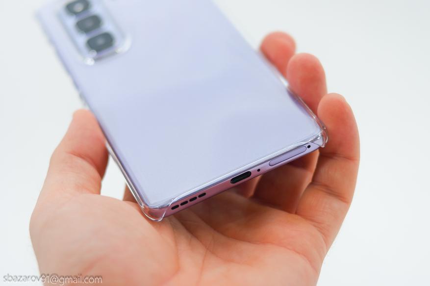 Для защиты смартфона предусмотрен защитный бампер, который оставляет открытыми боковые и нижнюю грань. Также, бампер закрывает пьедестал блока камер, нивелируя его высоту.