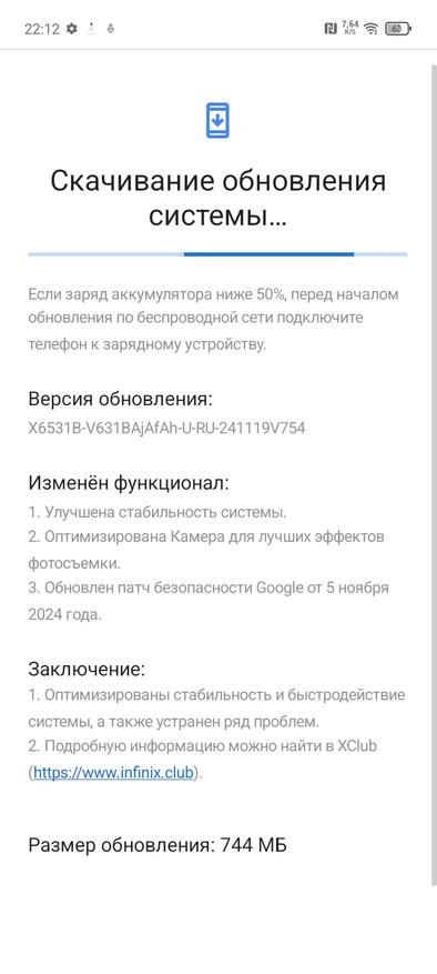 Наглядная демонстрация обновленной политики Infinix, касаемо обновления программного обеспечения. На HOT50i прилетело одно минорное обновление на 744 МБ, тогда как на HOT50 Pro+ целых три, объемом 70, 99 и 394 МБ.