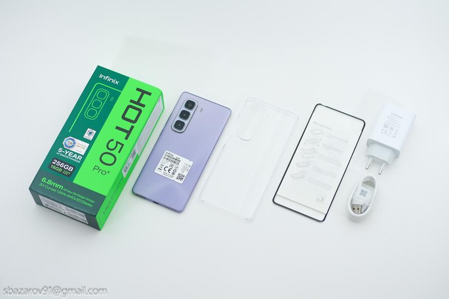 Комплектация у смартфонов схожая и предлагает защитный бампер, стекло/пленку (50 Pro+/50i), зарядное устройство на 18/33Вт (50 Pro+/50i) и кабель для передачи/зарядки.