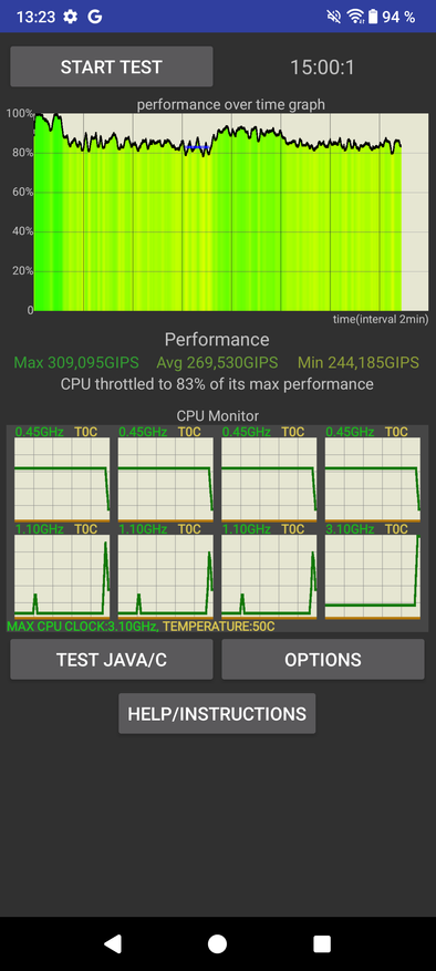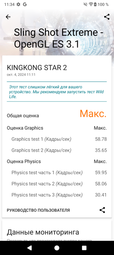 Прикладываю базовые тесты, на основании которых можно судить об общей производительности смартфона. Отмечу высокое значение Antutu — более 800 тысяч единиц. Что касается долговременной непрерывной работы, то присутствует некоторый уровень троттлинга (до 17% за 15 минут).
