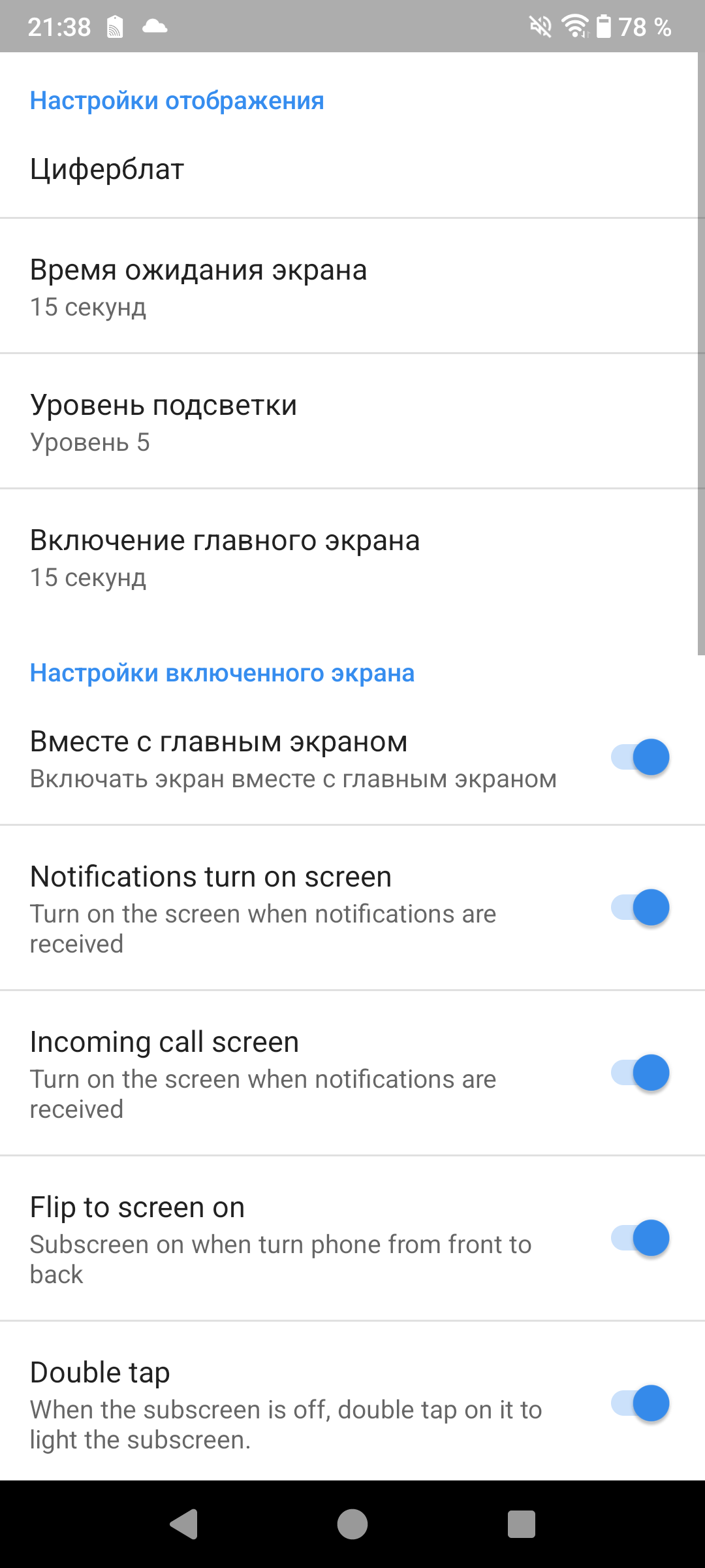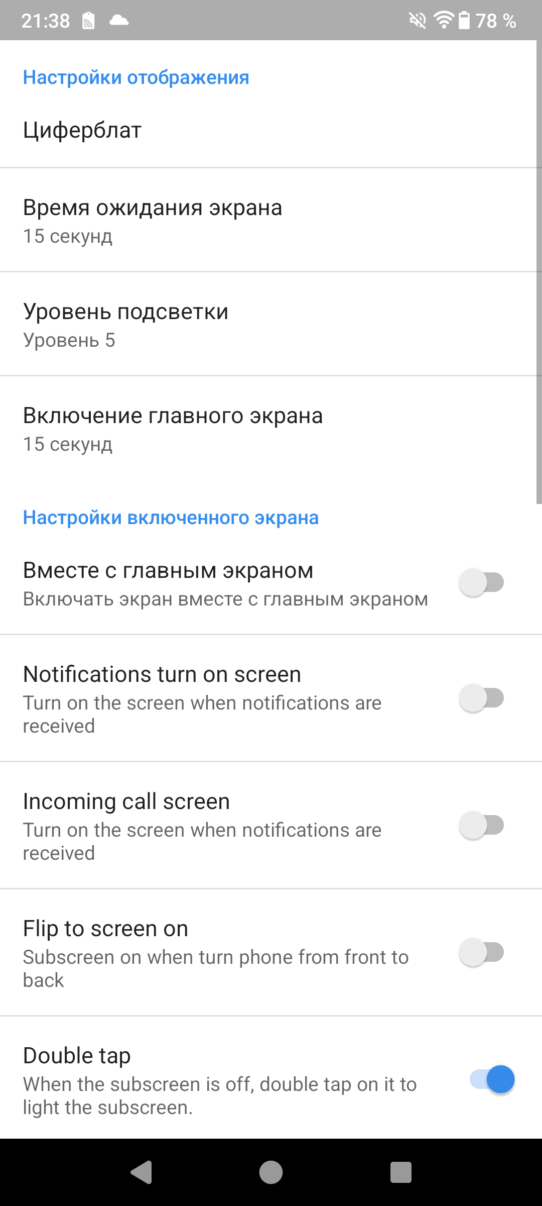 Оболочка — Android версии 14. Реализовано все привычным способом. Из необычного — отдельное меню для настройки возможностей боковой кнопки, а также отдельное меню для настройки второго дисплея (действия, циферблаты, фон). Как и в других смартфонах на базе Android 14 можно увеличить память за счет подкачки (12+12 Гб).