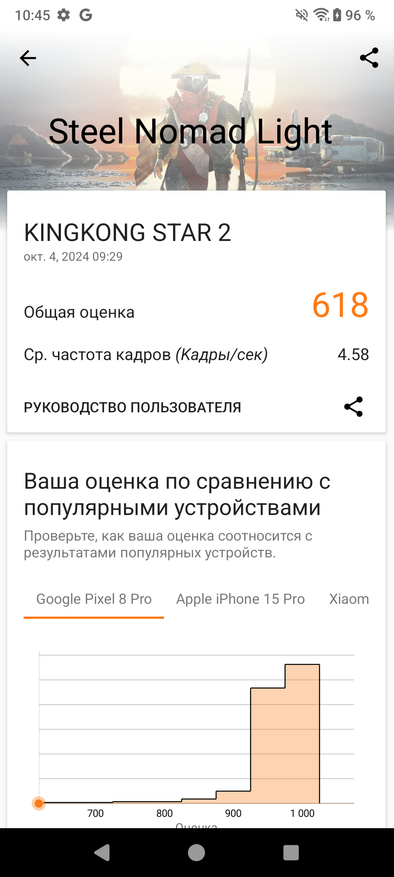 Сразу скажу, что смартфон подойдет для игр. Тут и память DDR5 с приличным объемом: это штатные 12 гигабайт и можно сделать дополнительную подкачку в 12 Гб, то есть удвоить память. И быстрый процессор Mediatek Dimensity 8200, выполненный по технормам 4 нанометра, и современный GPU Mali-G610. Внутри установлен радиатор с отводом тепла от чипа процессора по технологии LiquidColling, что позволяет более или менее равномерно распределять тепло. Да и массивный корпус сам по себе более теплоёмкий, так что в играх смартфон нагревался еле заметно. Сильнее греется при длительной зарядке в быстром режиме — учитывайте это, если есть привычка играть с подключенным зарядным проводом.