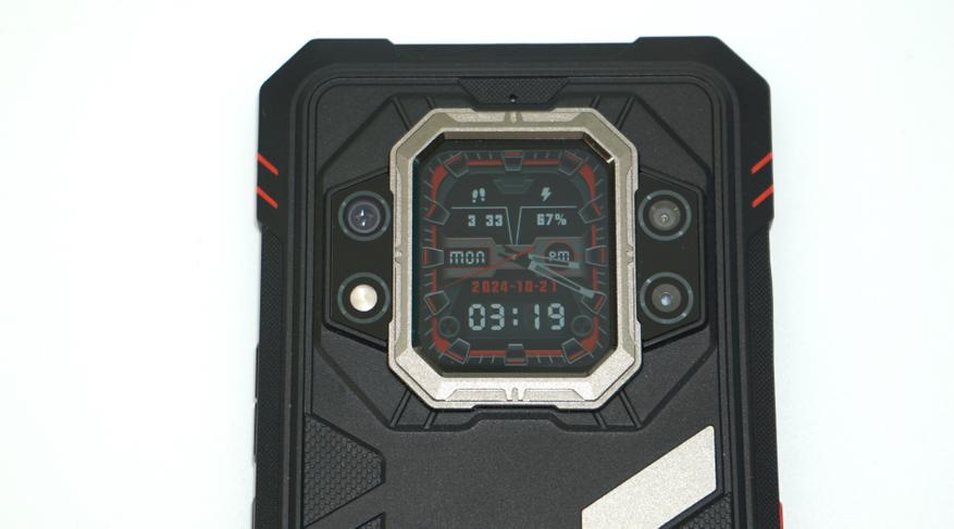 Смартфон достаточно интересный на первый взгляд. Это не типичный «обмылок», которые сейчас есть у всех производителей. Здесь и рубленные формы защитного бампера. и фактурная задняя панель, и выступающая окантовка дополнительного дисплея… Такой смартфон явно не будет похож на другие и будет выделяться среди других, как минимум, размерами и брутальностью.