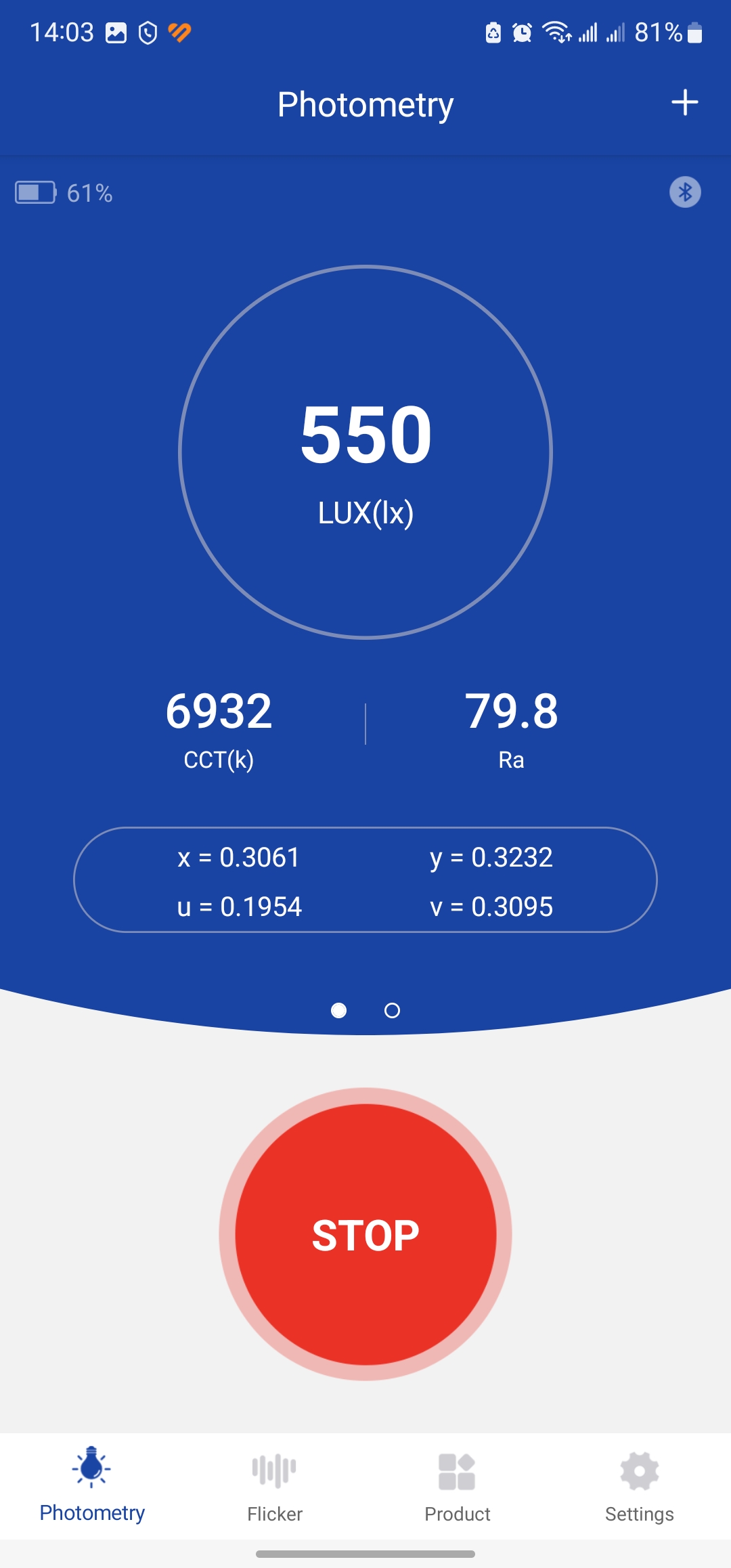 Пиковая яркость матрицы может достигать 1500 нит, по заявлению производителя. Измеренная яркость равняется 550 нит в обычном долговременном режиме. Мерцаний практически нет, и это хорошо — тип матрицы IPS.