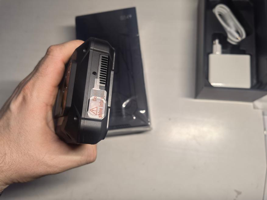 На следующих фотографиях показаны три основные стороны телефона: дисплей с 50МР фронтальной камерой от Hynix; фонарь со стробоскопами и набором основных камер с главной 200МР от Samsung, 50МР широкоугольной и 8МР телевика от Hynix, 64МР ночной от OmniVision с четырьмя инфракрасными диодами; проектор на переднем торце с входным местом под воздух для охлаждения. Корпус телефона прочный, прорезиненный с дополнительной защитой по углам и металлическими вставками. На обороте в нижней части нанесено название бренда «8849». В руках тяжело держать обозреваемый, но такова его сущность, что «большой вес — это хорошо». Модель явно не для тех, кто хранит мобильные телефоны в карманах джинсов. На аппарат наклеено защитное стекло Panda MN228 от китайского бренда Tingsu Group — аналог американского Gorning Gorilla Glass.