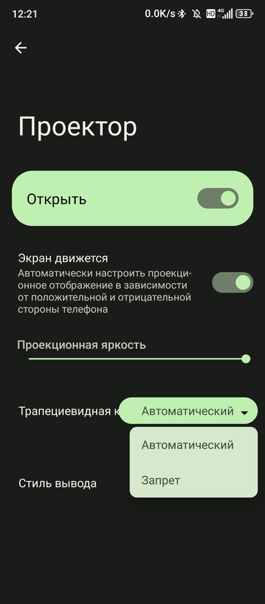 Ниже показаны настройки проектора смартфона. Подобные были и в первых прошивках Tank 2, но после обновления пропали. У меня сейчас, как понимаю из скриншотов с номерами сборок других пользователей, актуальная прошивка, в которой настройки сохранены. Проектору Можга сразу задать расположение, или вертикальное, или горизонтальное. Экран отключается при использовании проектора. Как мне кажется это удобно. Для его пробуждения надо нажать на кнопку блокировки. Кому-то такое взаимодействие не нравится.