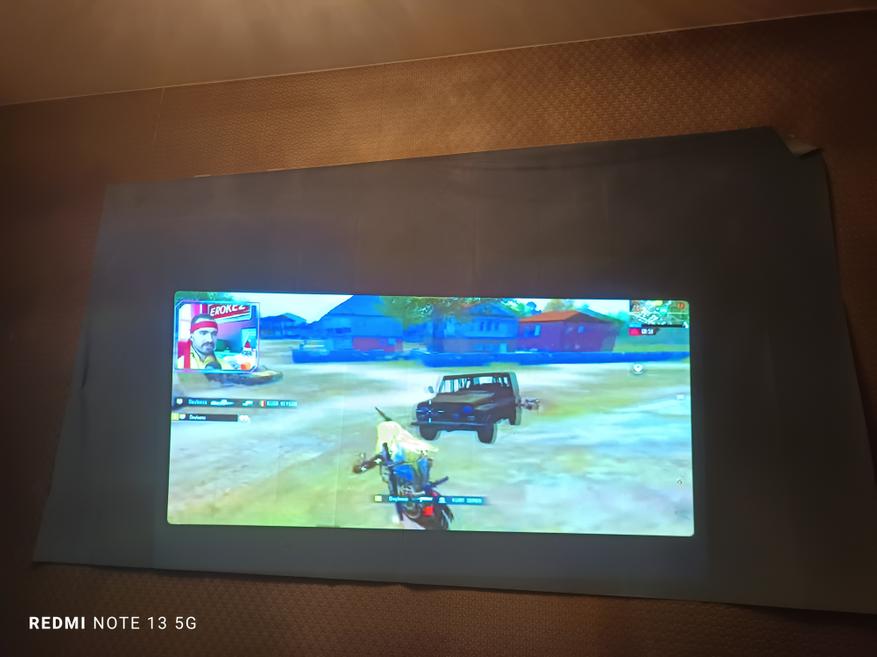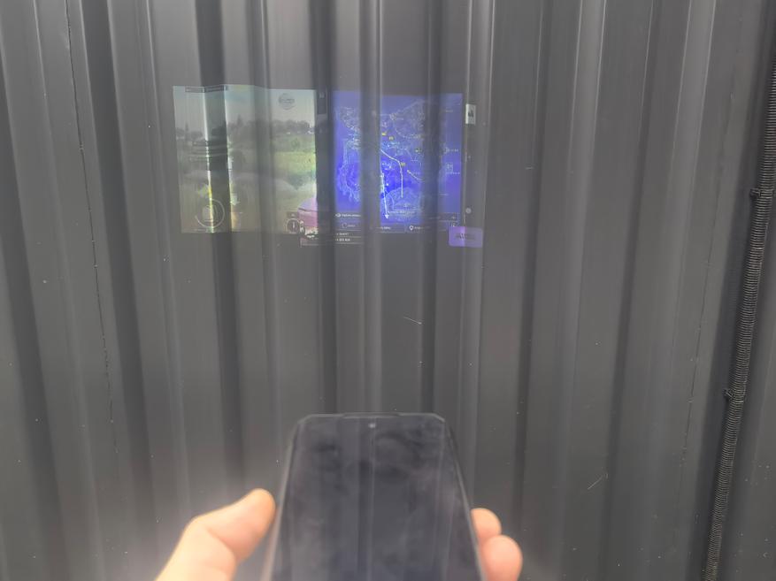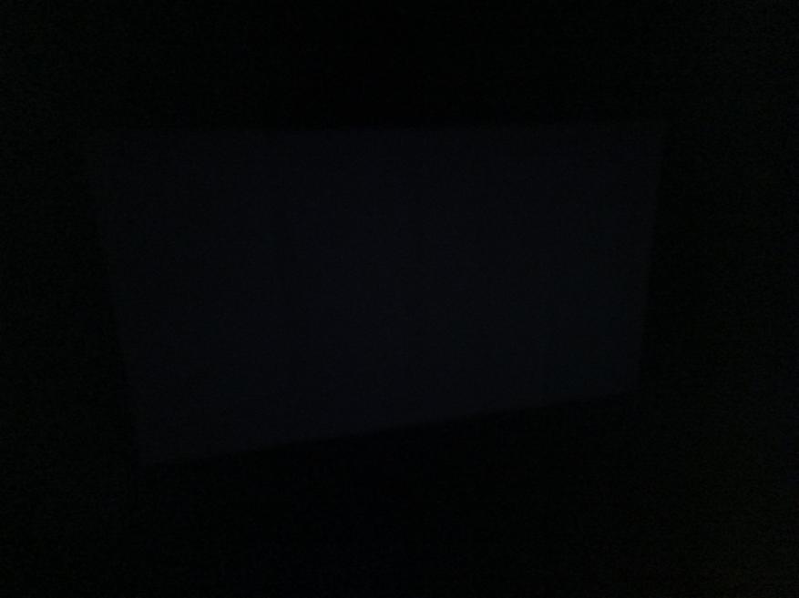 Мне было интересно ещё до проведения замеров увидеть, как будет выглядеть проекция днём. Проверял на разных поверхностях, но в городе найти их не так-то просто. Яркий свет будет «мешать» просмотру. На второй фотографии при включенном освещении в комнате видно неплохо. Без света — ещё лучше.