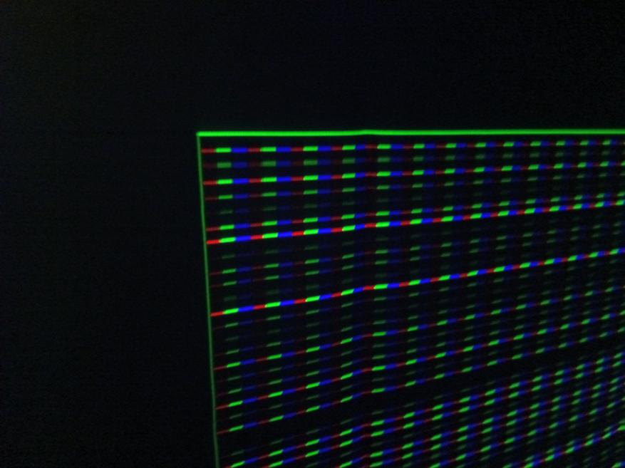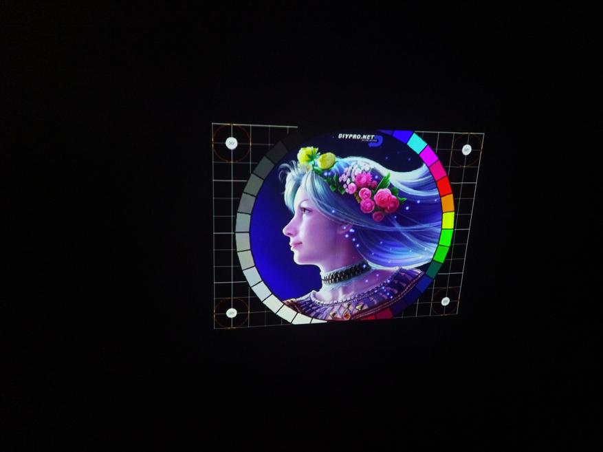 Яркость оценивал по 9 точкам с 1 м до проекции. Формула следующая, найти среднее 9 значений Люксов с помощью Opple Light Meter 4 на белой картинке с разрешением 1920х1080 и умножить на площадь проекции. Девять значений Лк — от 257 до 299 Лк. Температура на кривой BBL — 10000K, Ra — 87,2. Duv больше 0,004, поэтому цвета выглядят неестественными, но другого ожидать не стоило.