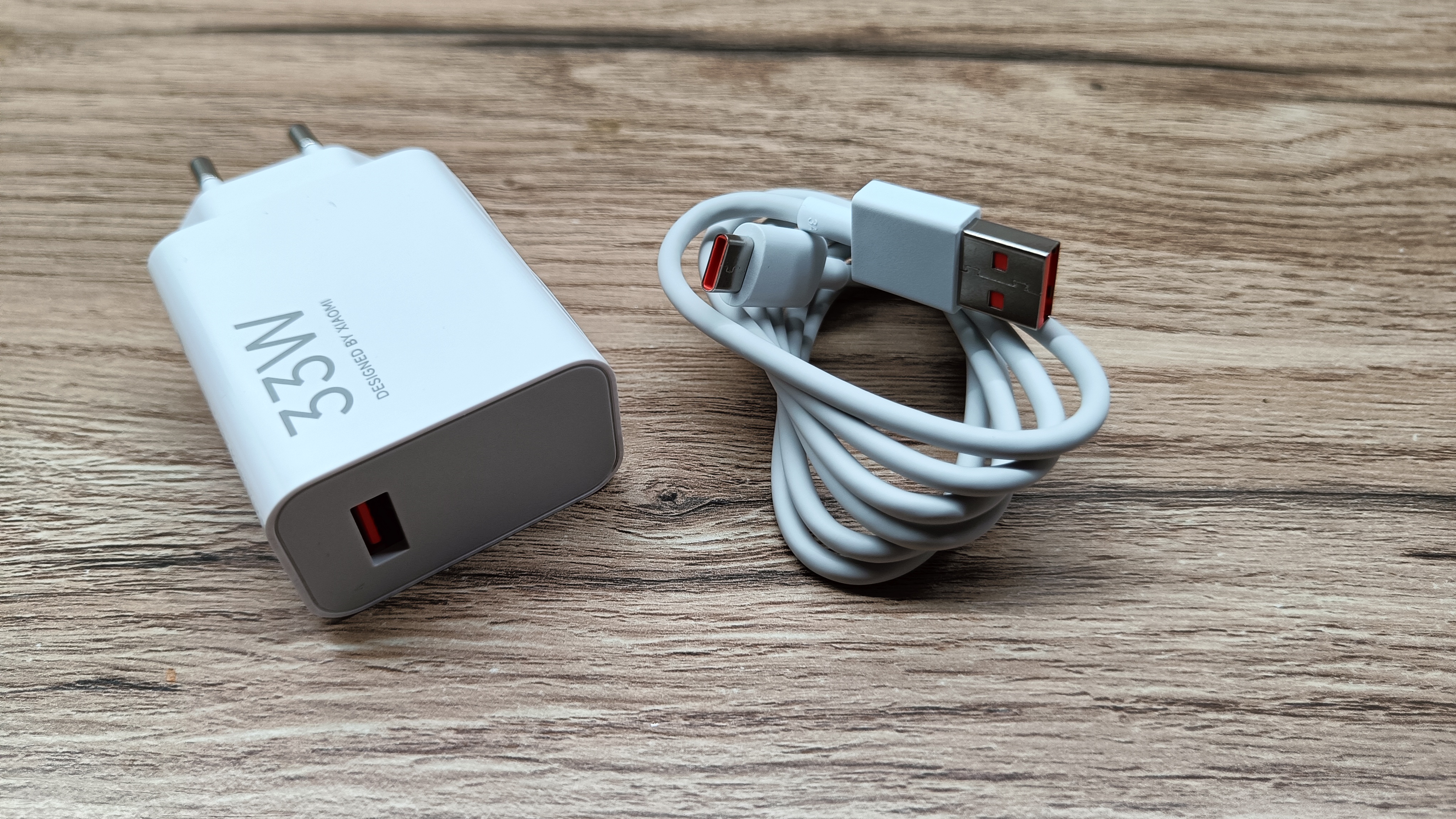 Стандартная картонная коробка с изображением смартфона и перечислением кратких технических характеристик. Внутри находится стандартный набор для смартфонов: блок питания, провод, чехол «калоша» и скрепка для извлечения лотка. Также есть необходимый набор бумажной документации на русском языке. Блок питания на 33 Вт, что уже хорошо. Во время заряда блок почти не нагревается, посторонних звуков нет. Зарядка относительно быстрая и аккумулятор на 5500 mAh до 100 процентов пополняется за 1 час 10 минут. Провод стандартной длины в 1 метр с разъемом USB Type-C на конце.