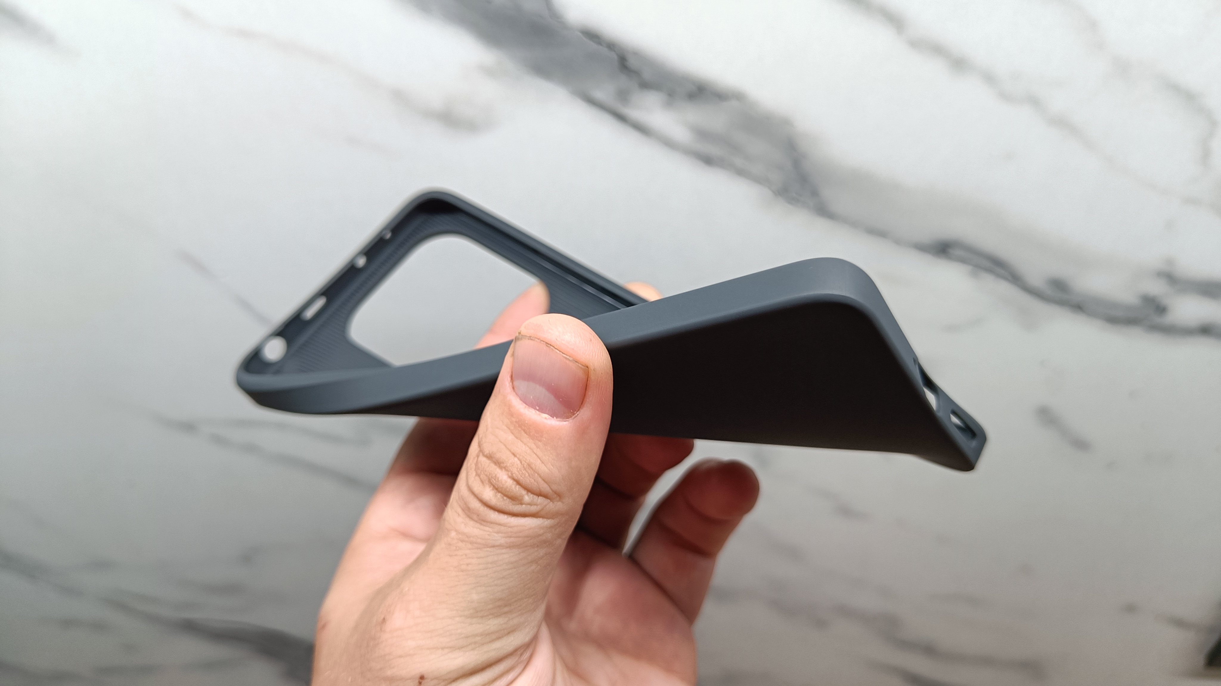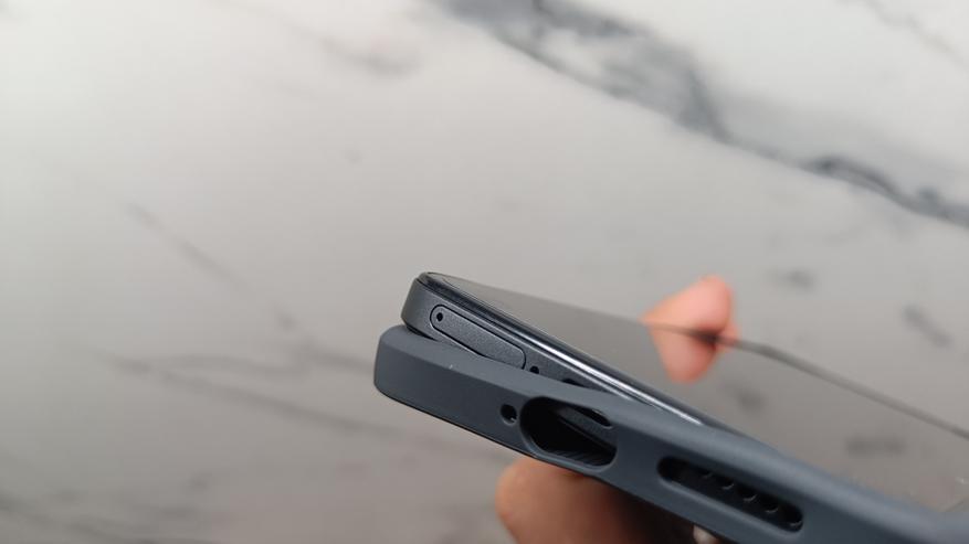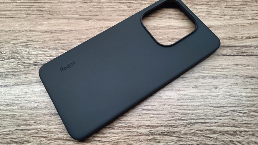 Чехол внешне напоминает «калоши» от Poco. Цвет серый, но слегка темнее. Изготовлен из мягкого пластика, прекрасно выдерживает удары и смягчает падения. Под интерфейсы есть вырезы, а у камеры дополнительные бортики. Экран слегка утоплен в корпус.