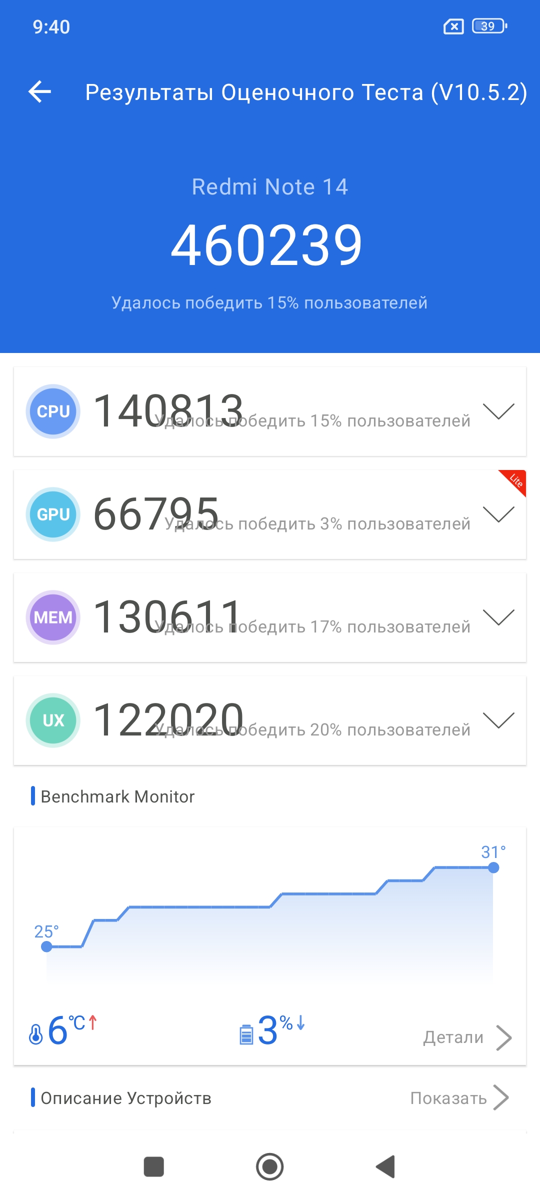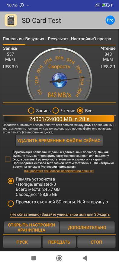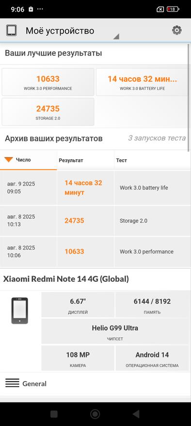А вот тестирование накопителя показало результаты значительно лучше, чем в 14 Pro. Напомню, проведенные тесты показали скорость записи в 355 MB/s, а чтение 651 MB/s, тогда как у обычного Note 14 они составляют 557 MB/s и 843 MB/s соответственно. Не скажу, что визуальна видна разница в скорости работы, но в скорости работы накопителя есть значительные отличия.
