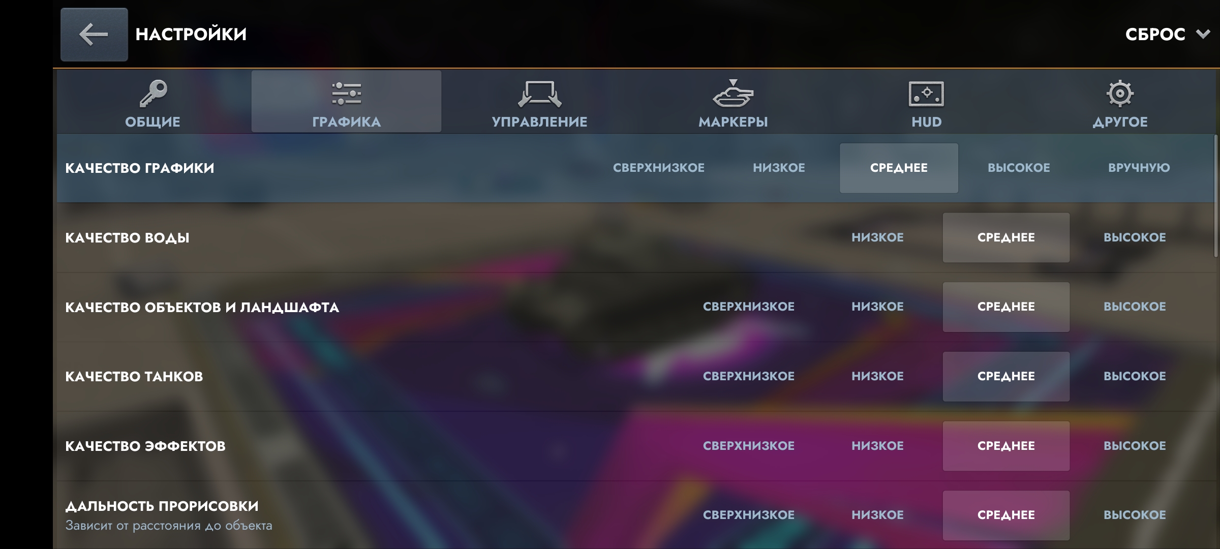 На средних значениях графики уже можно играть без ограничений. FPS находится в диапазоне от 58 до 62.