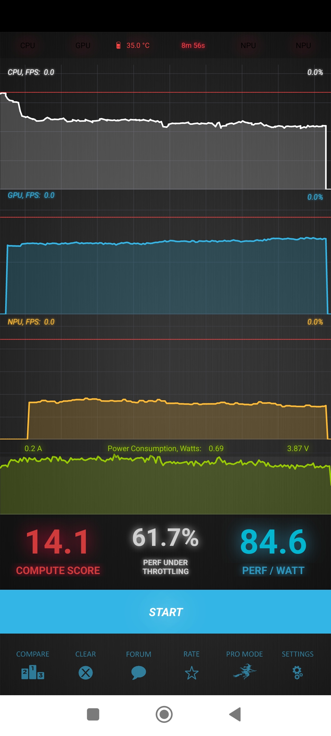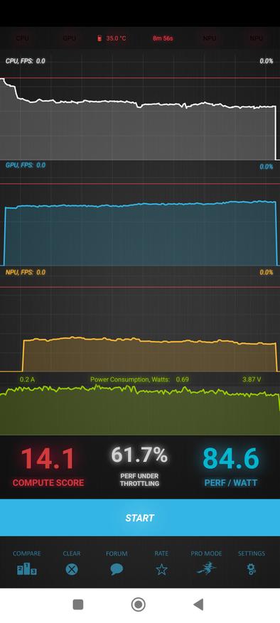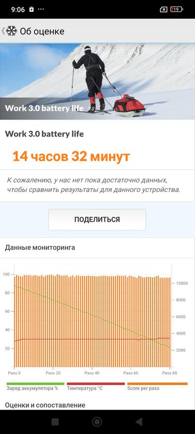 Напомню, что у смартфона аналогичный с Pro версией аккумулятор и результаты теста автономности показывают незначительные расхождения. Разряд с 87% до 20 при средней яркости составил 14 с половиной часов. Результат адекватный и вполне ожидаем. При активном использовании, придется в конце дня подключаться к зарядке.