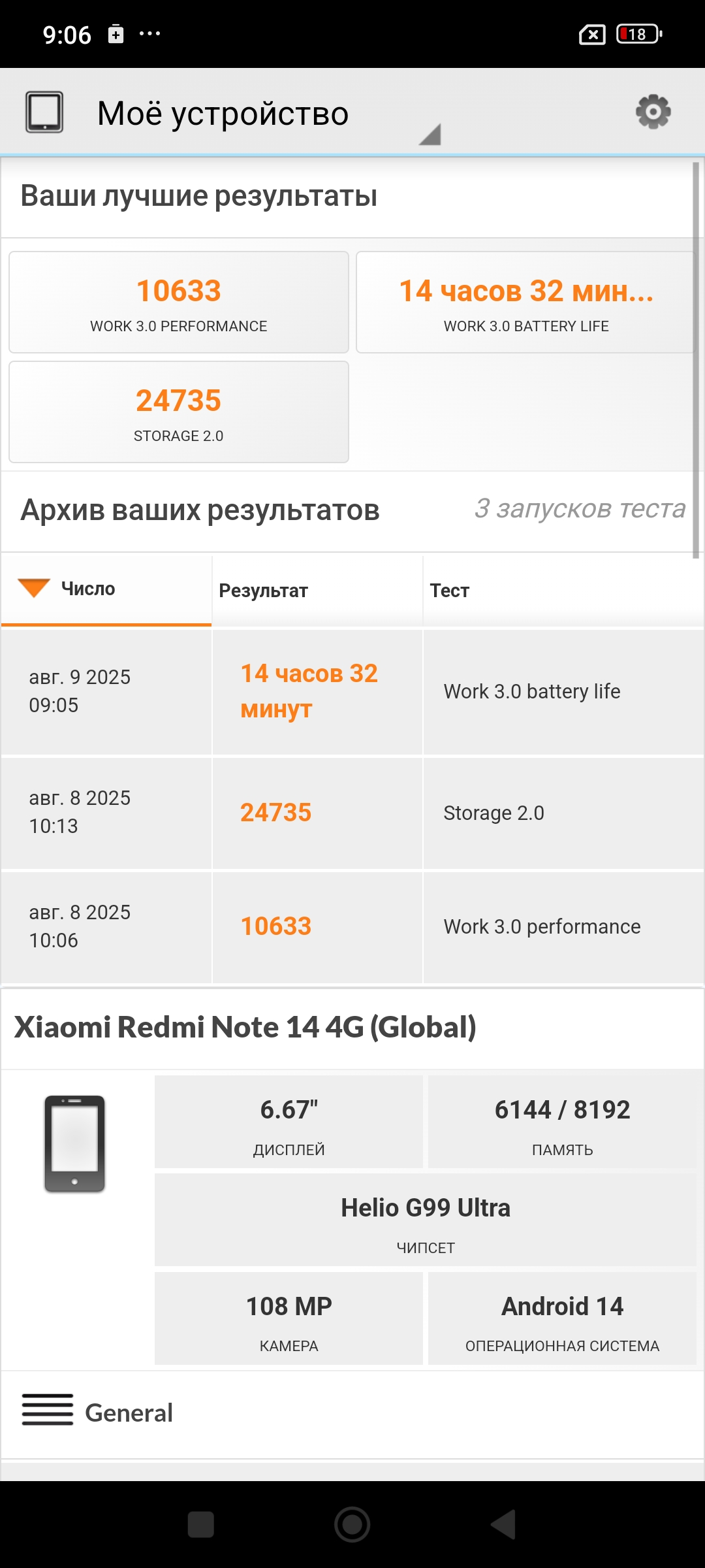 В Pc mark тест Work 3.0 performance смартфон Redmi note 14 набирает 10633 очков, тогда как 14 Pro набирал менее 9 тысяч.