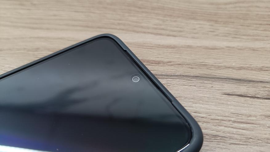 Экран имеет незначительные закругления по краям. Изначально есть заводская пленка. Селфи-камера выполнена в виде небольшого круглого отверстия. Цвета сочные, а на солнце адекватно реагирует автоматическая регулировка, подбирающая яркость. Отпечаток пальца снимается на экране в нижней части.