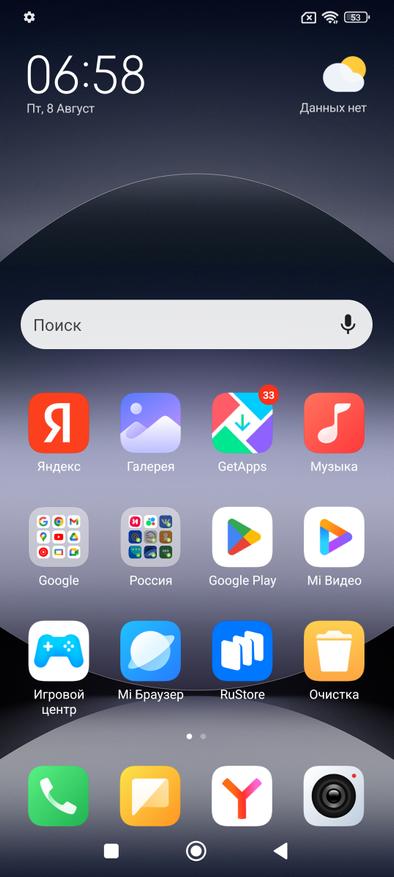 Смартфон для российских пользователей, поэтому были предустановлены различные «одобренные» приложения. Часть из них выведены в виде ярлыка и в дальнейшем можно самостоятельно загрузить или удалить. А так выглядят окна после загрузки. Меню стандартное для данной версии операционной системы с качественным переводом. Из интересного можно отметить возможность выбора частоты обновления в 120 Гц.