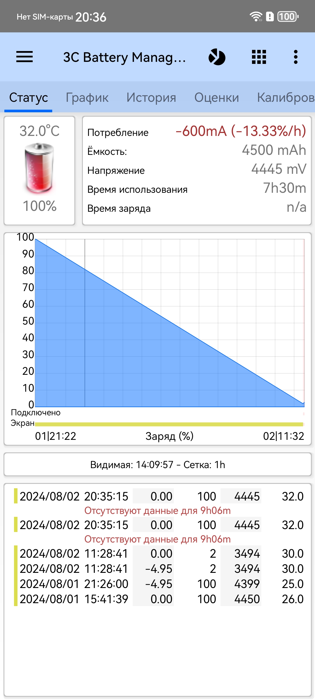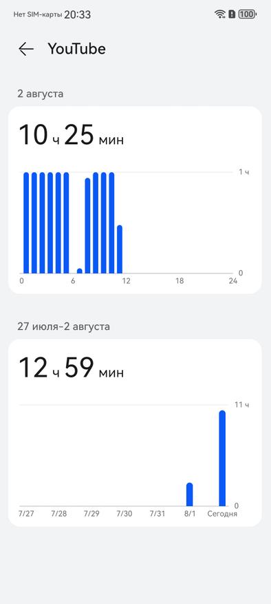 Разряжается смартфон долго. На 45% уровне подсветки YouTube можно смотреть 14 часов. Такой уровень выбрал, как достаточный для среднего использования (во время теста отключил авто режим). В обычных условиях использования (показан на четвертом скриншоте ниже) активного экрана мне хватило на 6 часов. За этот период играл, смотрел YouTube, работал с текстом и лазил в интернете