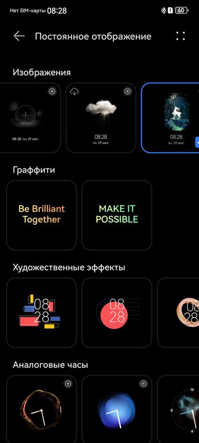Можно настроить режим постоянно включенного экрана (AOD). Примеры его вида показал на следующих снимках экрана.