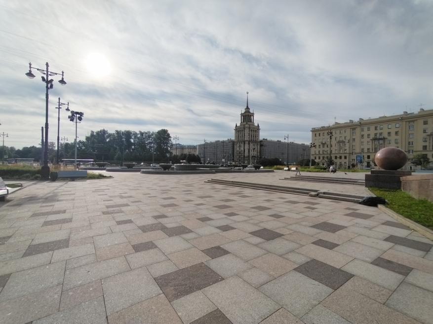 Если добавить в кадр ещё больше света, то автоматика и алгоритмы его отрабатывают менее хорошо. На следующих трёх снимках показаны кадры на основную камеру и максимальный зум. По первому видно, что хорошо бы убавить яркость, по второму — разделение здания и неба не настолько четкое, как того хотелось бы.