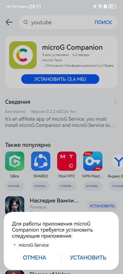 Вопрос отсутствия сервисов Google в новых моделях HUAWEI решается установкой microG. После этого большинство приложений, для которых нужны Google-сервисы, работают нативно.