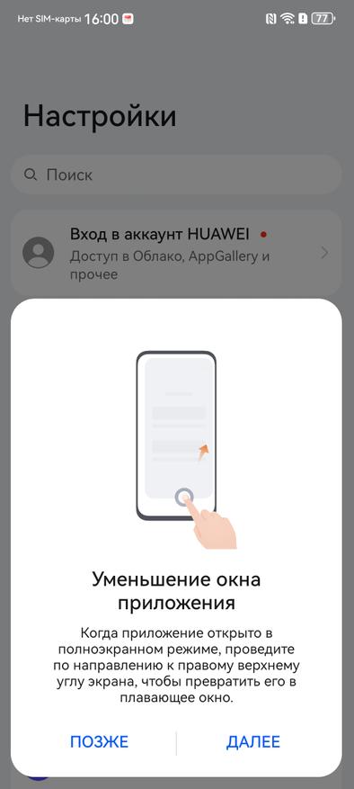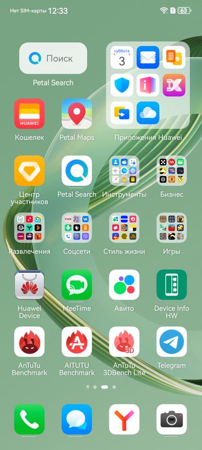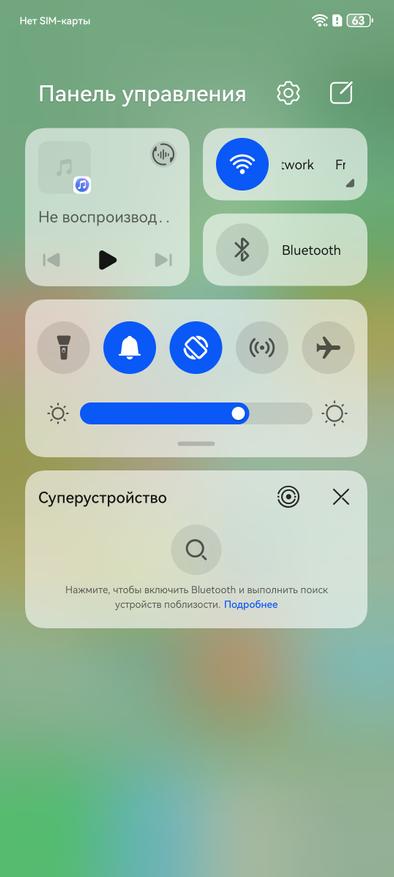 Из коробки предустановлено очень много программ, что видно по первым двум скриншотам. Некоторые из них я уже установил лично. Вид шторки меню показан на четвертом скриншоте. В ней можно получить быстрый доступ к оплатой NFC, управлению подсветкой, звуку, «Суперустройством», включить Huawei Share и другое. Последние названные опции полезны, если у вас есть товары из экосистемы Huawei, к примеру ноутбук HUAWEI MateBook X Pro 2024 (обзор здесь). Включив «Суперустройство» вы можете передавать файлы с телефона, интерфейс которого появляется на компьютере, как и управлять им.