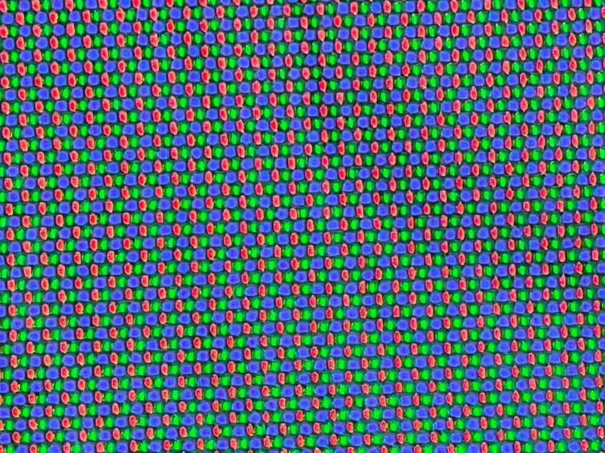 Структура пикселей 6,67″ OLED-дисплея показана на фотографии ниже. Фотография сделана при увеличении 35х в режиме «Супермакро» со смартфона HUAWEI Pura 70 Ultra (обзор здесь). Дисплей имеет частоту обновления в 90Гц. Мне приятно пользоваться телефонами, частота обновления экрана которых больше 60Гц. С одной стороны 90Гц — это меньше, чем 120Гц, но и этот уровень неплохой. Глаза от экрана у меня не устают. Информацию по яркости экрана не нашел, но у старшей версии 12S, читал оценку в 1200 нит, что, конечно, в версии 12SE будет ниже, но уровня мне довольно хватает при лёгком Солнце и тучах.