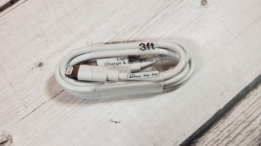 Кабель похож на оригинальный, вряд ли Amazon будет комплектовать смартфоны дешевой палью. И собственно тут сразу же и обнаруживается первый недостаток, а именно разъем lightning от Apple. Это сейчас они уже перешли на общепринятый USB-C, а тогда во всю продвигали свой стандарт. В плане удобства он ничем не хуже USB-C, т. к тоже является двухсторонним. Сложности в другом. Придется либо всюду таскать с собой этот кабель, чтобы была возможность подзарядиться на работе или в дороге. Либо купить еще 1 — 2 таких кабеля и закинуть в авто, на работу