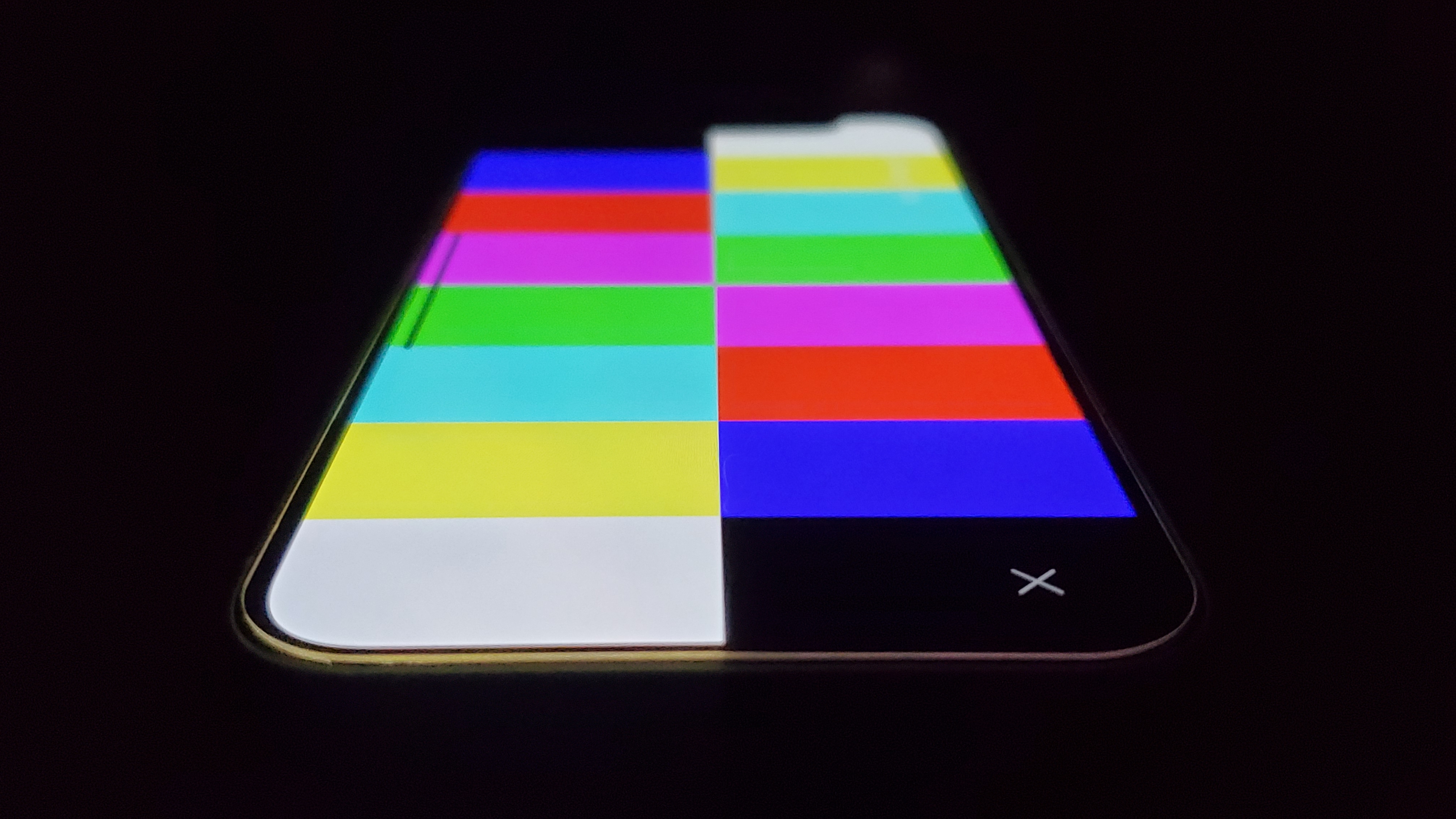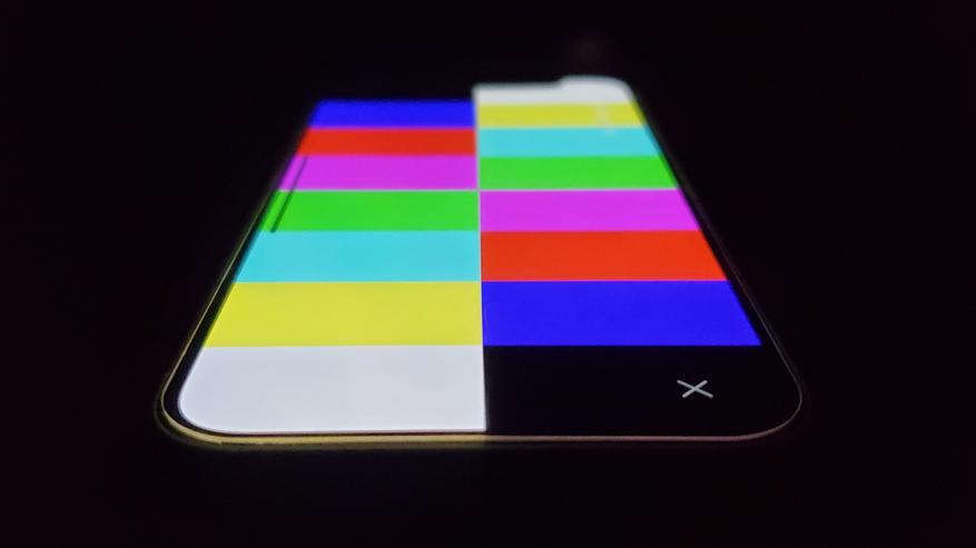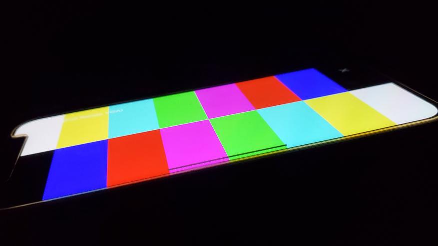 Черный благодаря OLED-матрице не излучает света и соответственно под углом нет засветов. По этой же причине отсутствуют утечки подсветки. С углами обзора у смартфона все хорошо, искажений по цвету нет, падения яркости отсутствует.