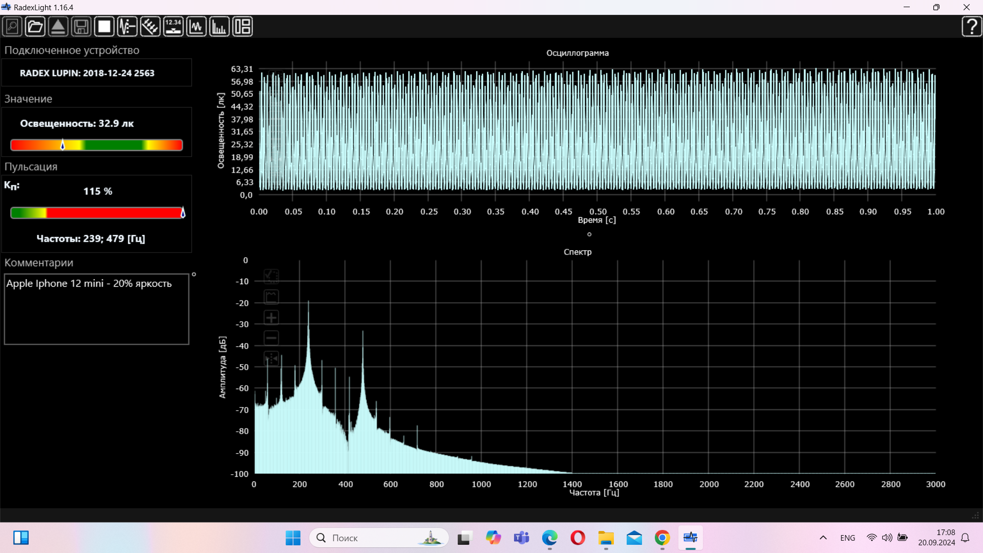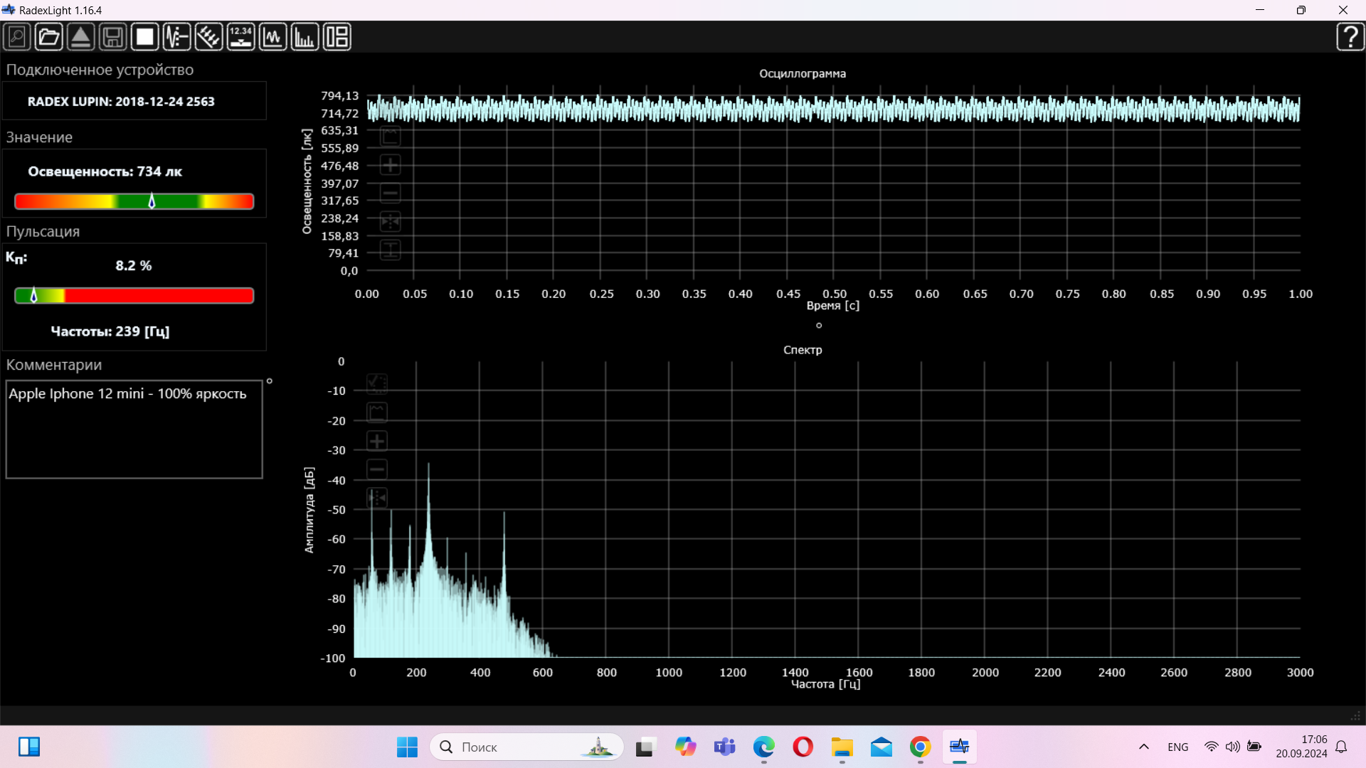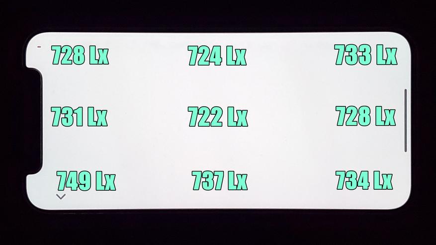 В плане пульсаций все относительно неплохо, особенно если сравнивать с конкурентами в лице Samsung. Там пульсации выше нормальных значений даже на высокой яркости, здесь же они становятся опасными только на яркости ниже 20%. Это очень интересно, особенно учитывая тот факт, что поставщиком дисплеев для iPhone является Samsung. Т. е корейцы в своих флагманах ставят свои худшие дисплеи? Или у них просто руки не из того места растут и они не могут нормально их настроить? Как бы там ни было, но экран у IPpone вообще шикарный, придраться не к чему. Кстати, максимальная яркость в SDR режиме составила 734 нит.