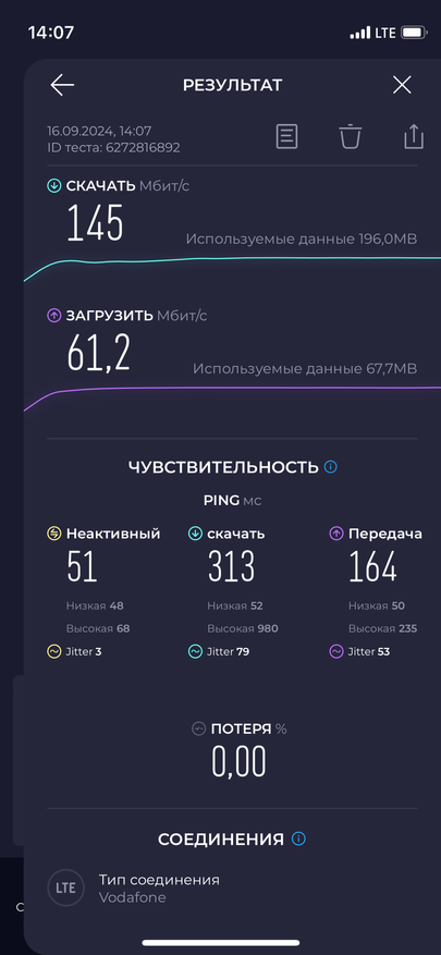 А вот что однозначно понравилось, так это модемы. Да и в целом функции связи реализованы на самом высоком уровне. Тот же разговорный динамик отлично передает голос, слышимость просто идеальная. А чувствительные антенны отвечают за стабильность соединения и отсутствие сбоев. Микрофон очень чувствительный, шумоподавление работает корректно. В плане интернета смартфон не разочарует. Для работы в сетях WiFi есть поддержка современного стандарта WiFi 6 и смартфон с легкостью обеспечивает скорость загрузки около 600 Mbps. За мобильный интернет отвечает фирменный модем, который в LTE сетях показал скорость около 200 Mbps. Да я в принципе не видел смартфона, который в сетях 4G показывал бы такой результат. В общем тут зачет!