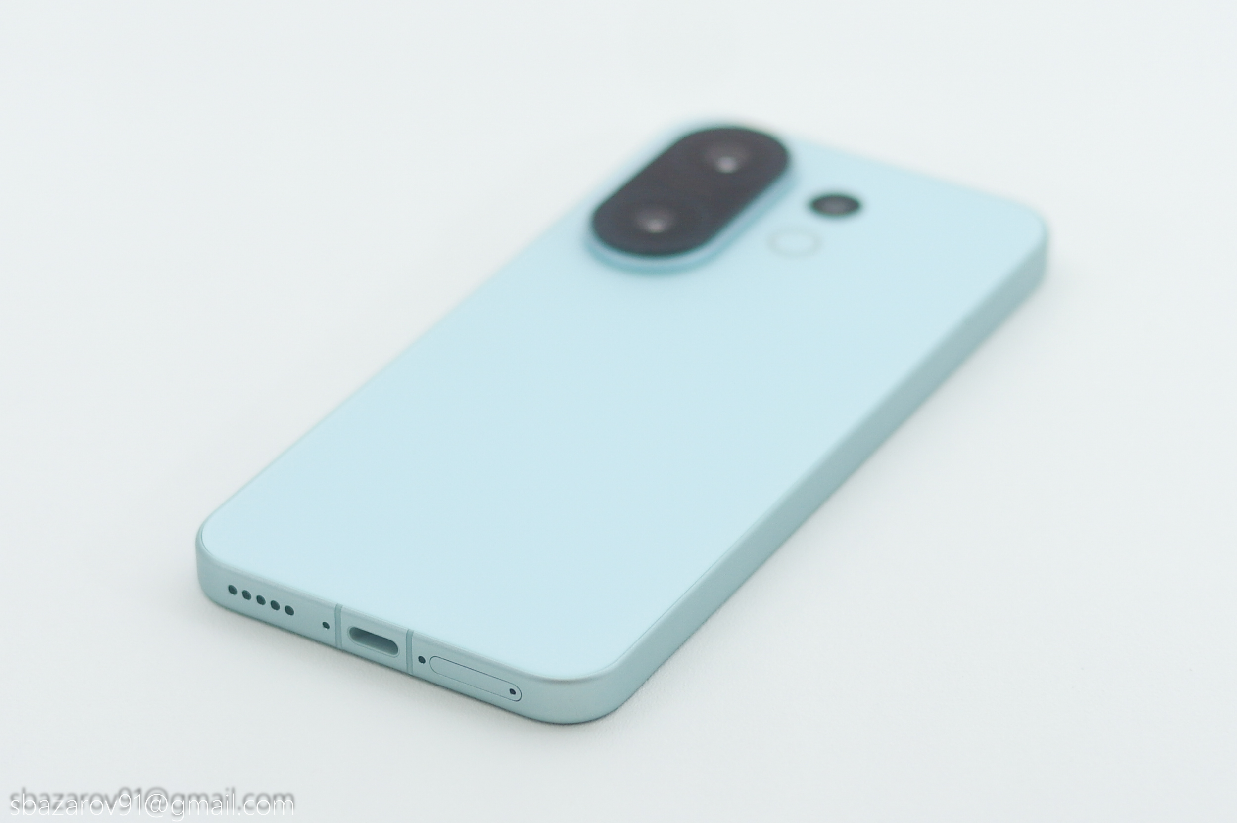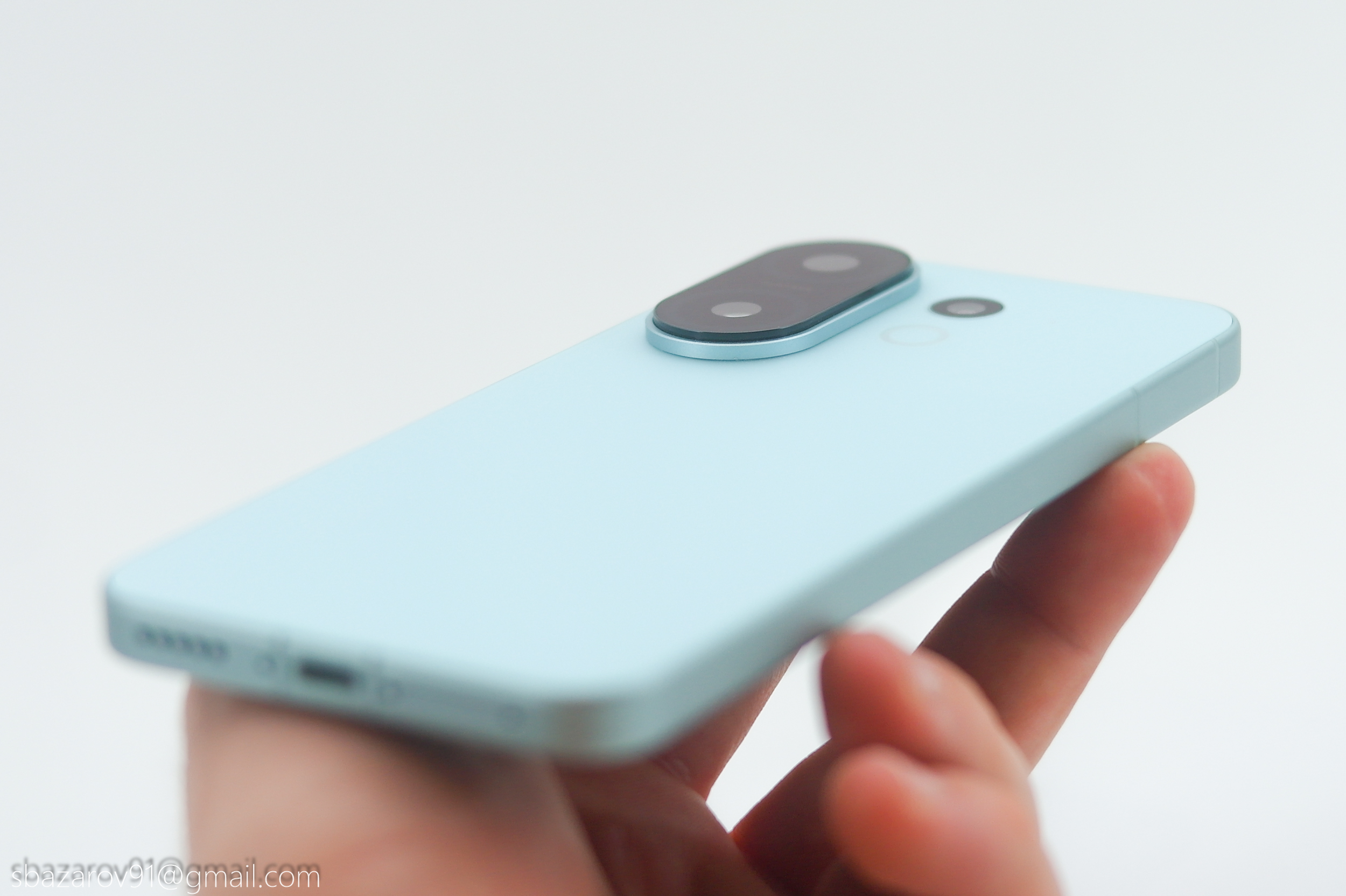 Цветовая гамма представлена двумя вариантами: «морской бриз» и «элитный черный». Оба цвета комплектуются матовой задней крышкой, невосприимчивой к скольжению. Рассмотрим смартфон со всех сторон. На левой боковой грани разместились сдвоенная клавиша громкости и кнопка включения, правая грань пустая. Сверху — пара дополнительных микрофонов, снизу — решетка стереодинамика, Type-C, основной микрофон и гибридный слот для двух nanoSIM-карт. Расширение памяти за счёт карты памяти не предусмотрено, единственный вариант — максимальный объем в 512 Гб при покупке. Ко мне в руки попал младший экземпляр на 256 Гб.