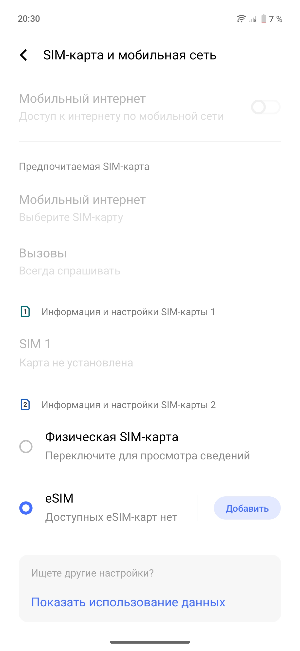 По части связи нам доступны: одна eSIM и одна nanoSIM, Wi-Fi 7, Bluetooth 5.4, навигация (BEIDOU/GLONASS/GALILEO/QZSS/A-GPS) и все необходимые частоты связи (включая B7 и B20).
