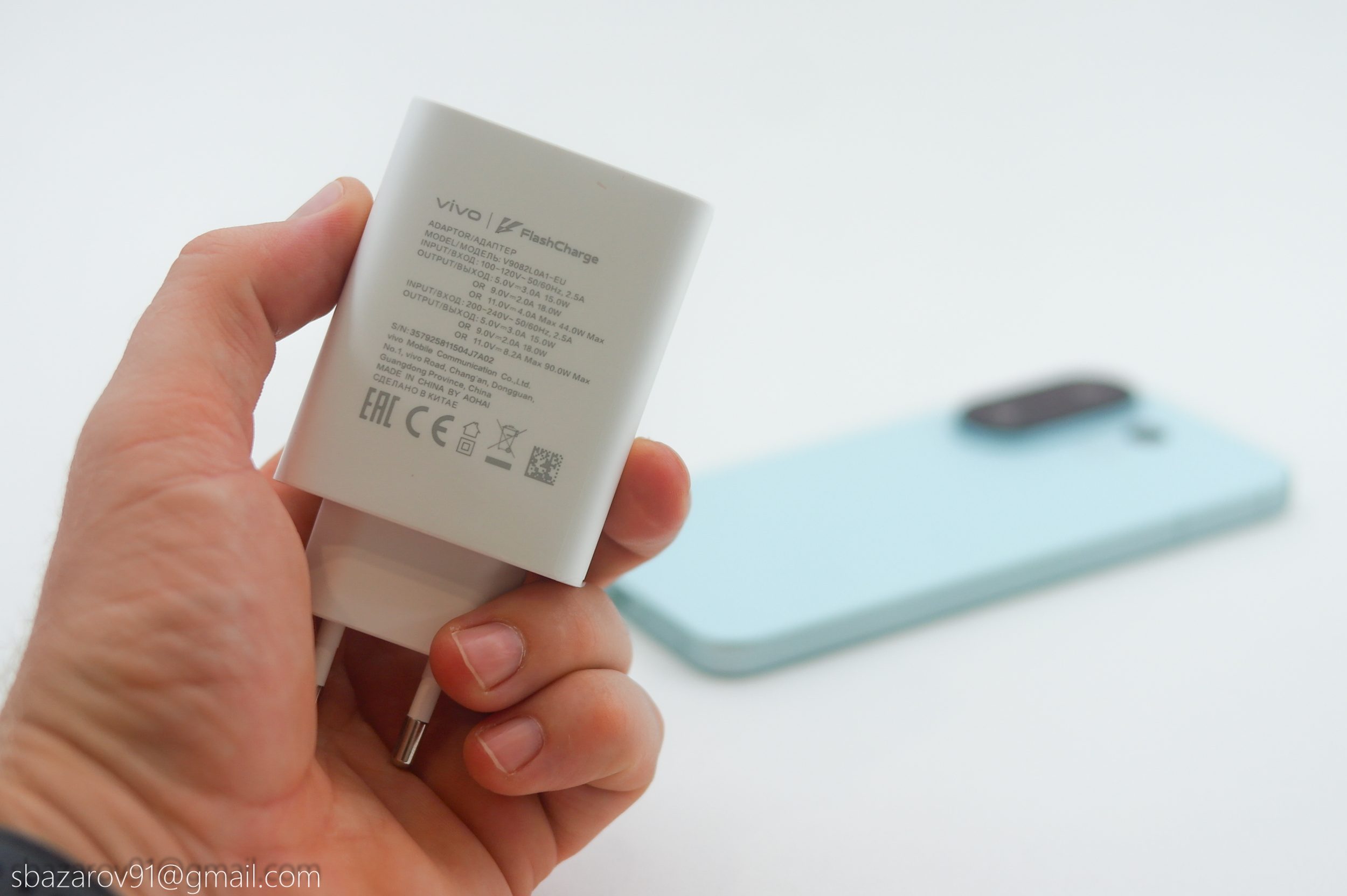 Ну и как же без времени заряда. Любой смартфон vivo (и iQOO в том числе) использует фирменный протокол FlashCharge. В случае с X200 FE — адаптер из комплекта на 90 Вт, обеспечивающий полный цикл заряда за 53 минуты. Результат довольно неплохой, особенно если учитывать наличие большого аккумулятора. Также можно заряжать смартфон сторонними зарядками с поддержкой QC3.0, но тогда время на зарядку возрастает до 1,5 часов.