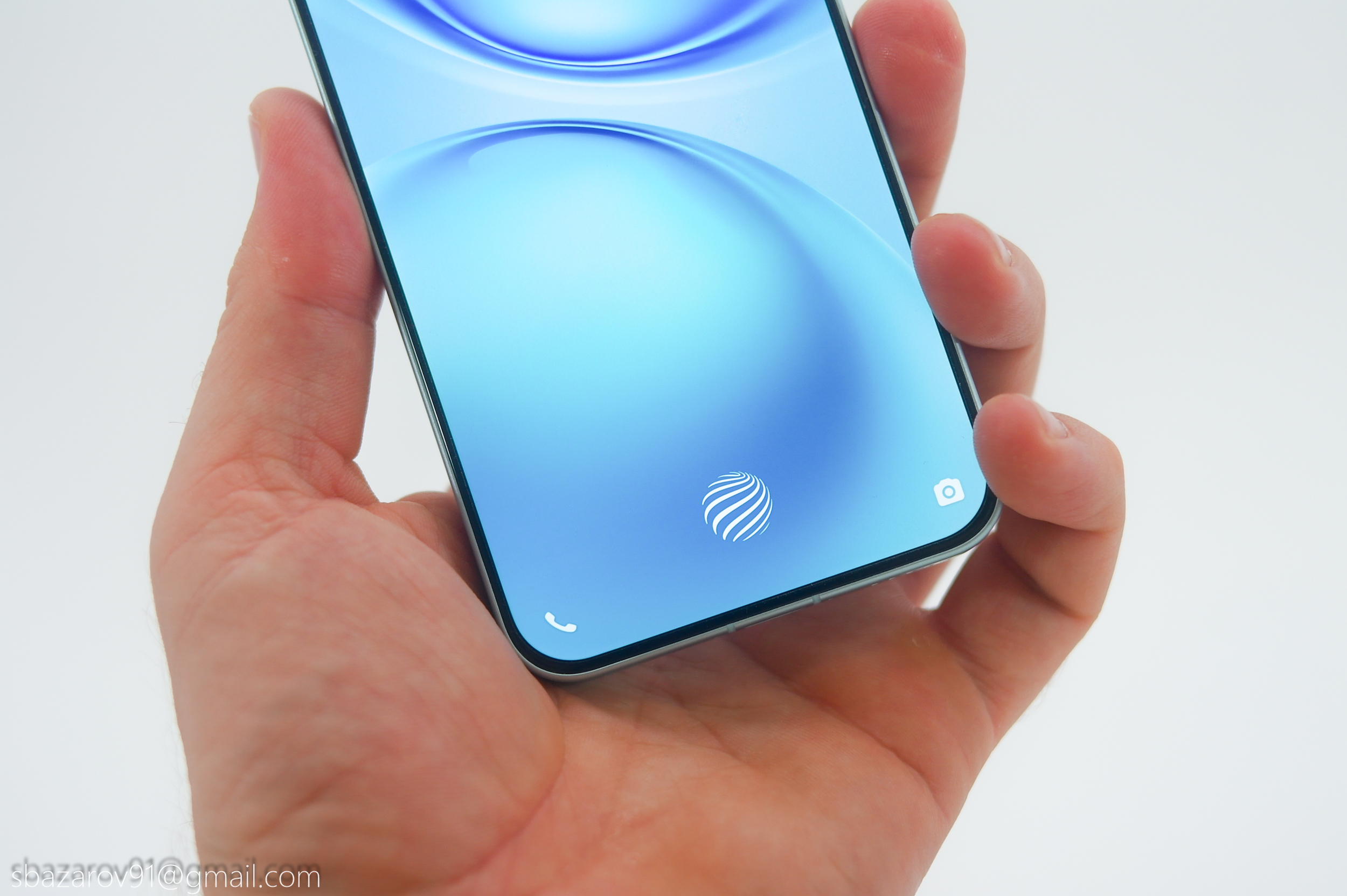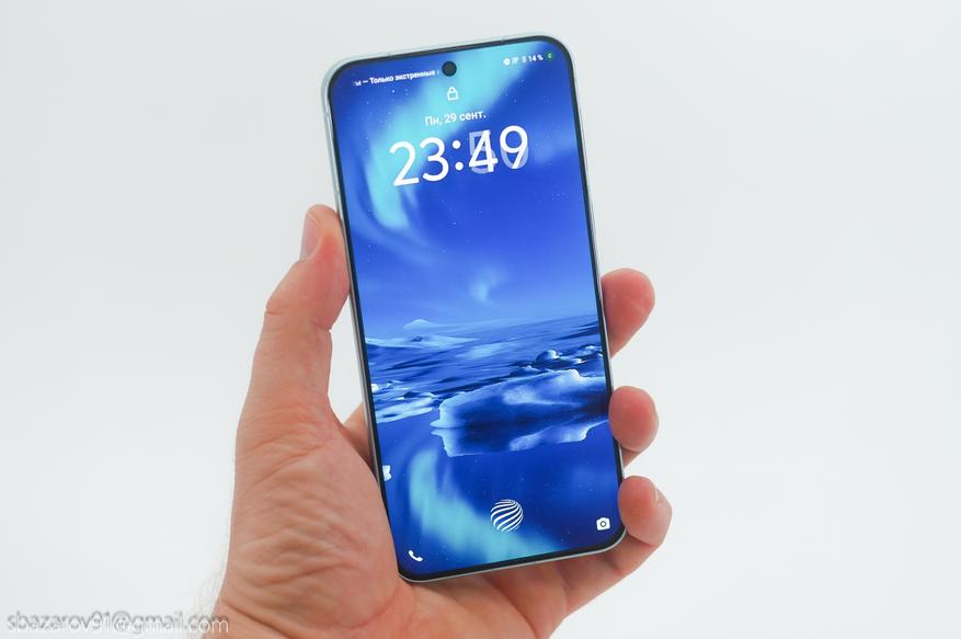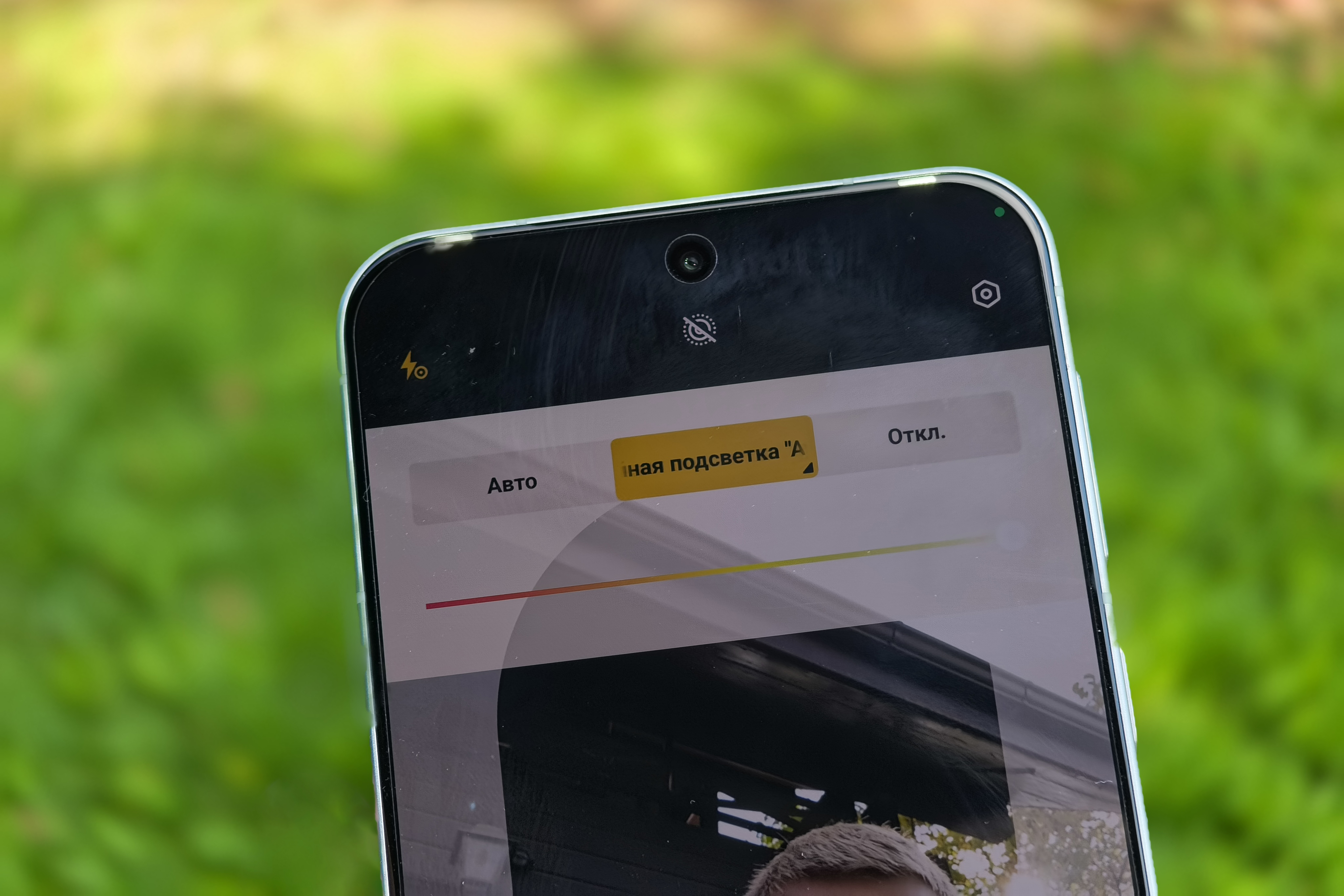 Датчик приближения — виртуальный. Фронтальная камера на 50 Мп от Samsung с автофокусом, сканер отпечатков пальцев — оптический и встроен в экран. Из неочевидного — пара LED-вспышек в верхней грани, которые включаются через настройки фронтальной камеры. Там же находится второй стереодинамик для разговоров и воспроизведения музыки. Звучит он в два раза тише и имеет явный дисбаланс в низких частотах по сравнению с нижним динамиком. Максимальная громкость достаточная, звонок вы точно не пропустите.