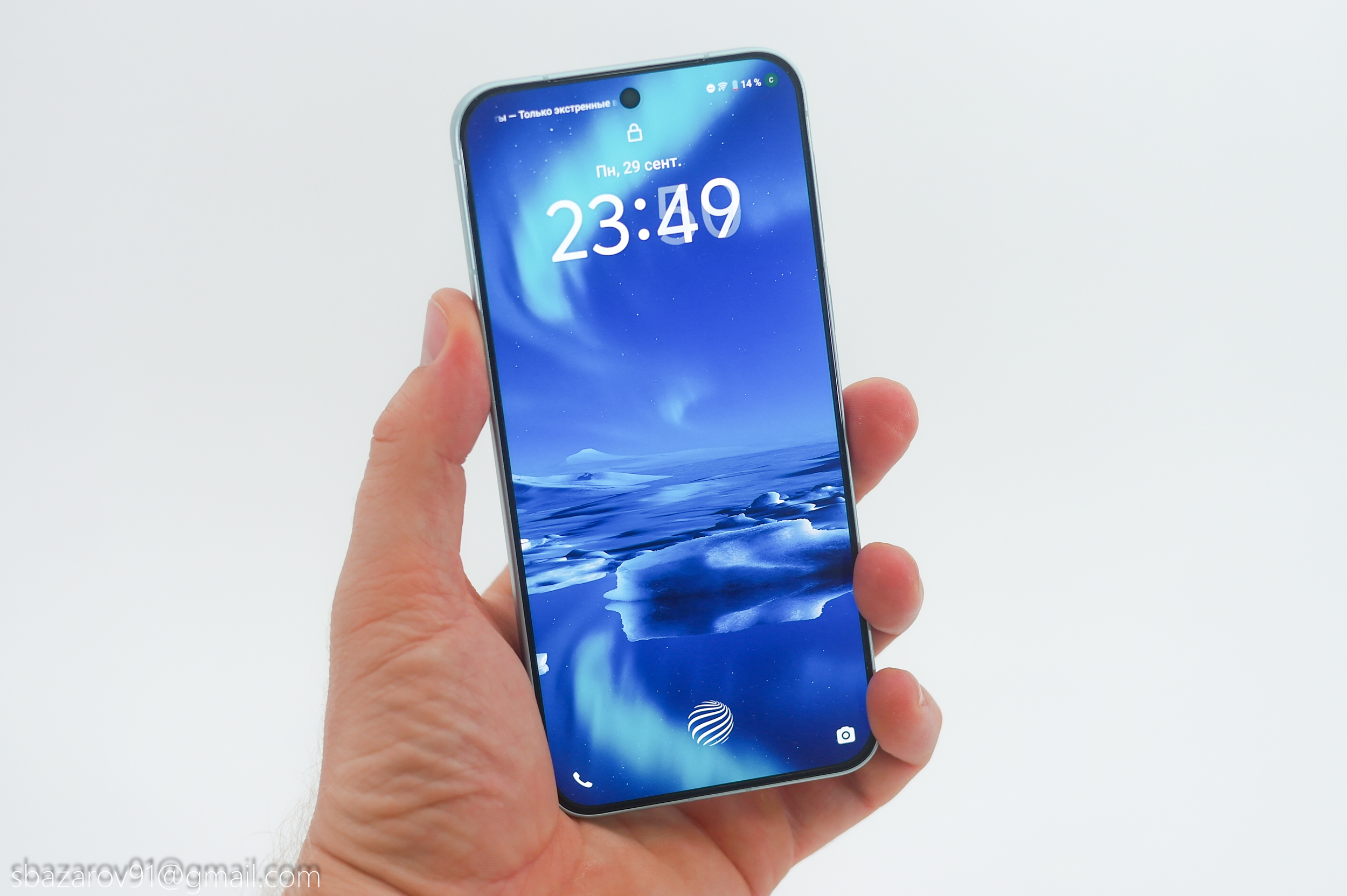 Экран — главная изюминка смартфона. Вместо повсеместных 7-дюймовых «лопат» здесь компактный 6,31-дюймовый LTPO AMOLED-дисплей с разрешением 2640x1216 пикселей и адаптивной частотой обновления в диапазоне 120/90/72/60 Гц. Хотя это не привычный LTPO-дисплей, способный опускать частоту до 1 Гц, адаптивность всё равно заметно продлевает автономность. Плотность пикселей при таком разрешении и диагонали крайне высокая и составляет 460 ppi (соотношение 19.5:9).