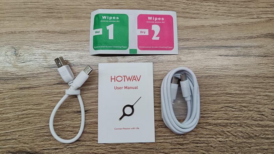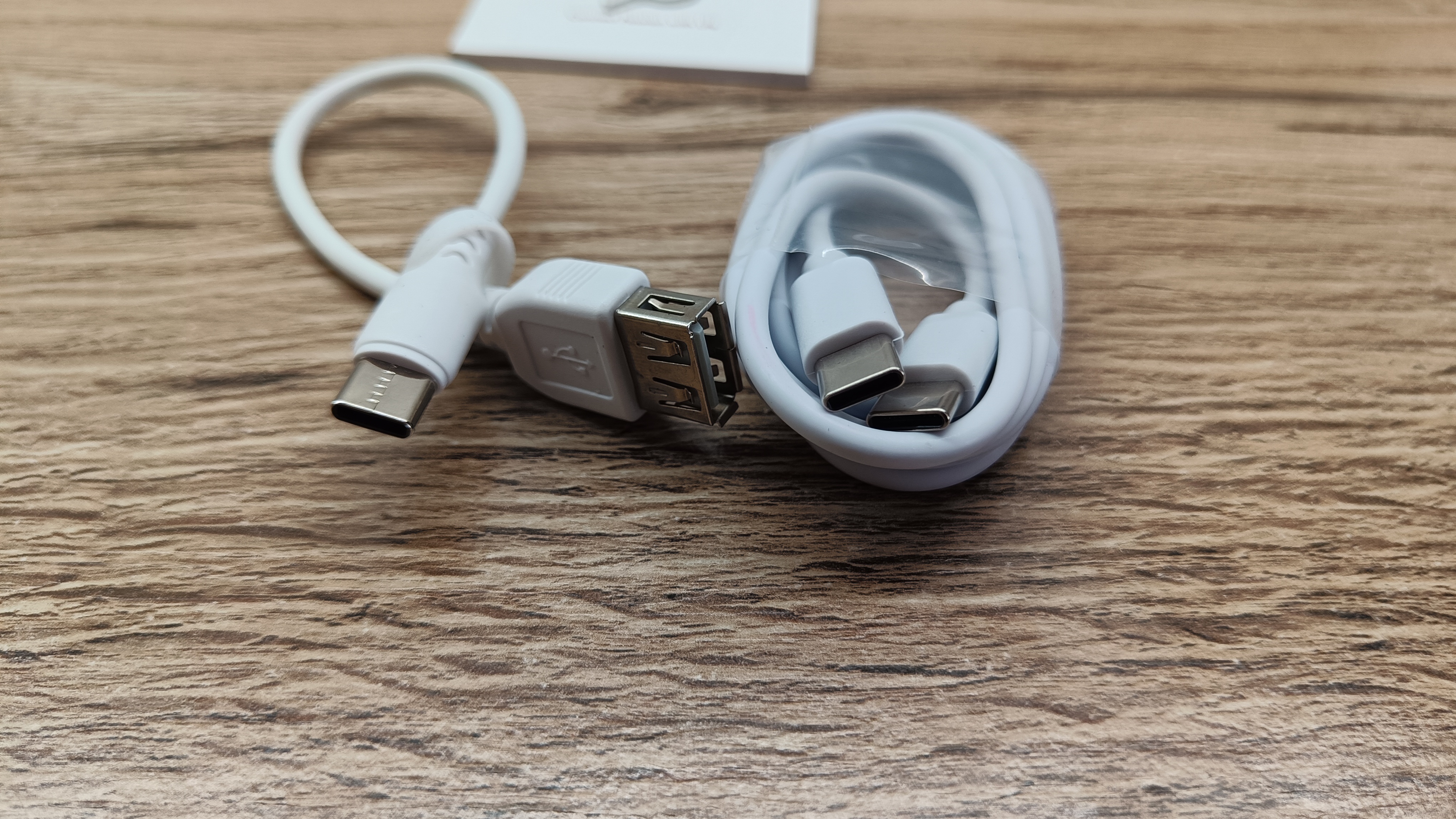 Комплектные провода идентичны предыдущим моделям. Это штатный USB Type-C и OTG кабель. Все это позволит зарядить смартфон, подключить накопители или даже питать внешние гаджеты от емкого аккумулятора. А еще есть защитное стекло с установочным комплектом. Изначально, на экране уже присутствует заводская пленка.
