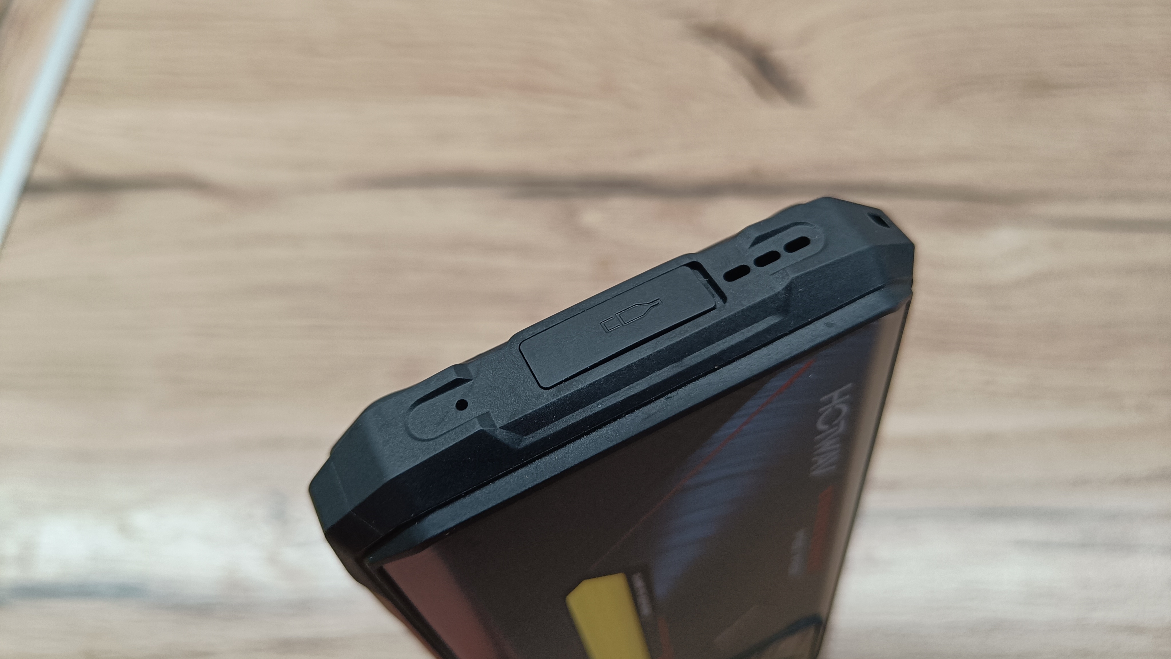 На нижней грани присутствует большой динамик и отверстие микрофона, а между ними разъем для зарядки аккумулятора. Для защиты от влаги предусмотрены резиновые уплотнения.